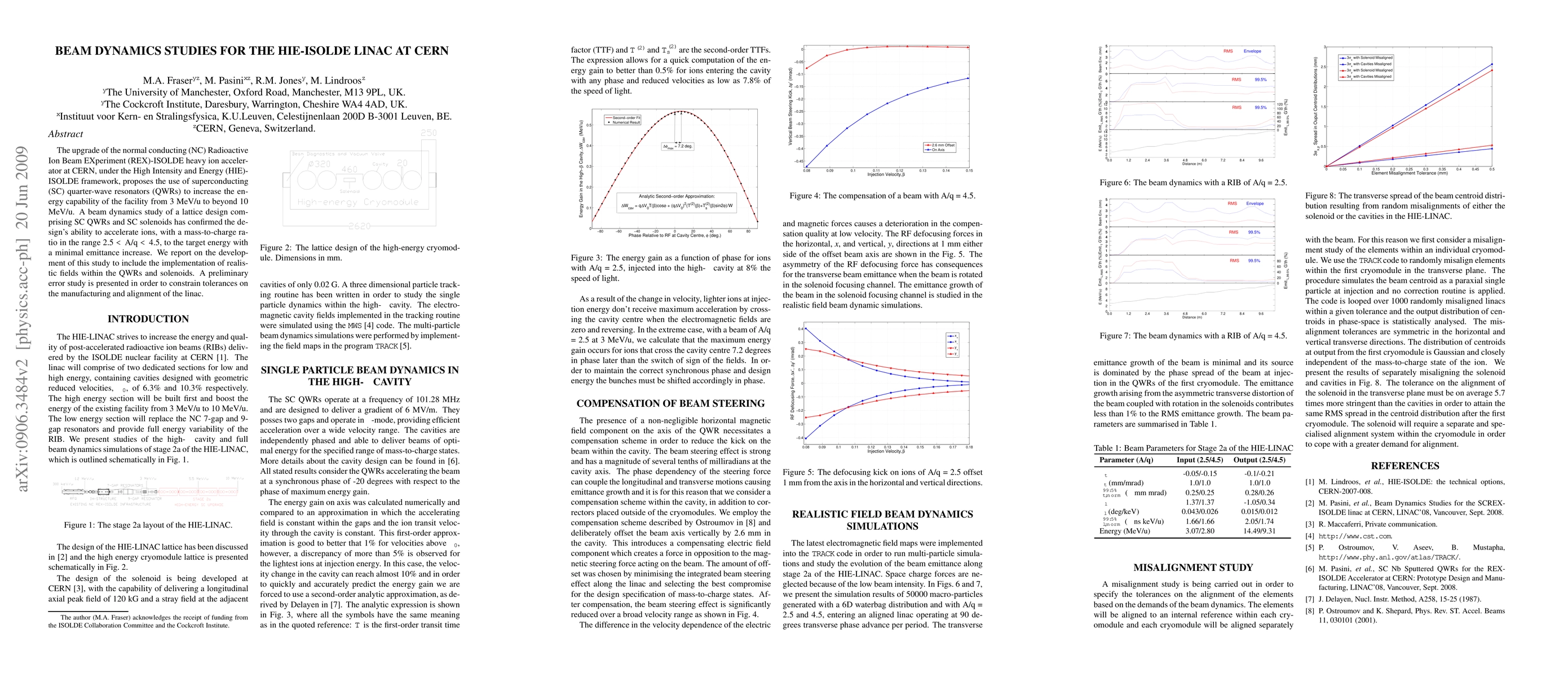 The upgrade of the normal conducting (NC) Radioactive Ion Beam EXperiment (REX)-ISOLDE heavy ion accelerator at CERN, under the High Intensity and Energy (HIE)-ISOLDE framework, proposes the use of superconducting (SC) quarter-wave resonators (QWRs) to increase the energy capability of the facility from 3 MeV/u to beyond 10 MeV/u. A beam dynamics study of a lattice design comprising SC QWRs and SC solenoids has confirmed the design's ability to accelerate ions, with a mass-to-charge ratio in the range 2.5 < A/q < 4.5, to the target energy with a minimal emittance increase. We report on the development of this study to include the implementation of realistic fields within the QWRs and solenoids. A preliminary error study is presented in order to constrain tolerances on the manufacturing and alignment of the linac.