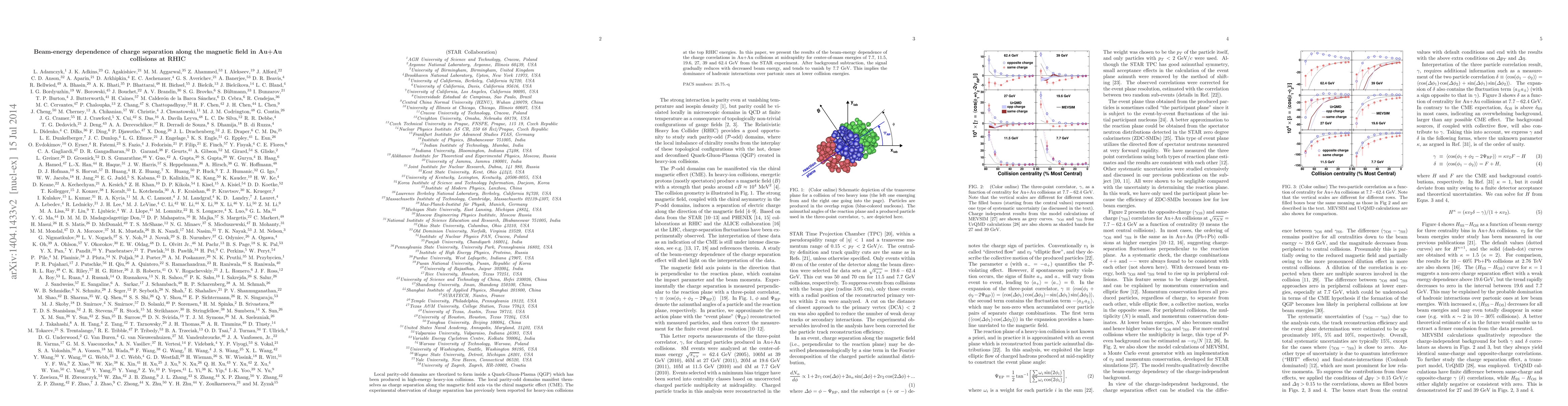 This paper investigates the beam-energy dependence of charge separation along the magnetic field in Au+Au collisions at RHIC, finding that the signal diminishes with decreasing beam energy and vanishes below 7.7 GeV, which has implications for the chiral magnetic effect in Quark-Gluon Plasma.