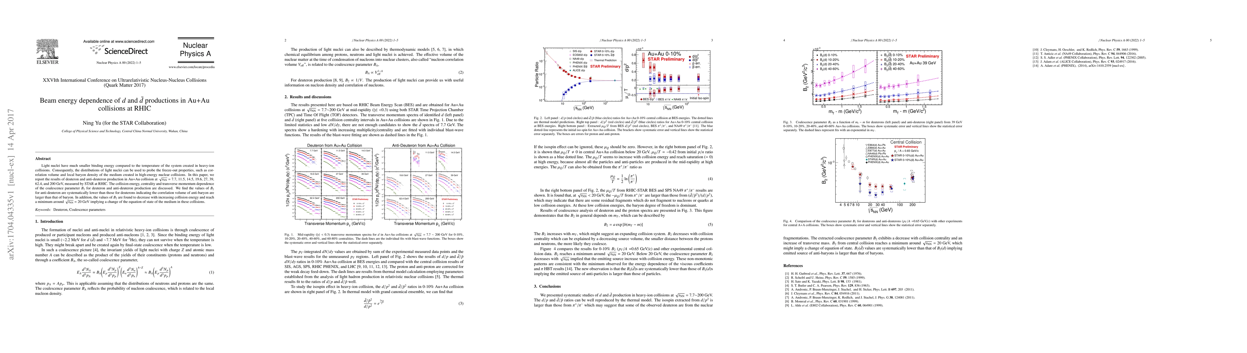 This paper investigates the production of deuterons and anti-deuterons in Au+Au collisions at various energies at RHIC, revealing that anti-deuterons have a lower coalescence parameter $B_2$ compared to deuterons, indicating larger correlation volumes for anti-baryons. The study finds that $B_2$ decreases with increasing collision energy, suggesting a change in the medium's equation of state around 20 GeV.