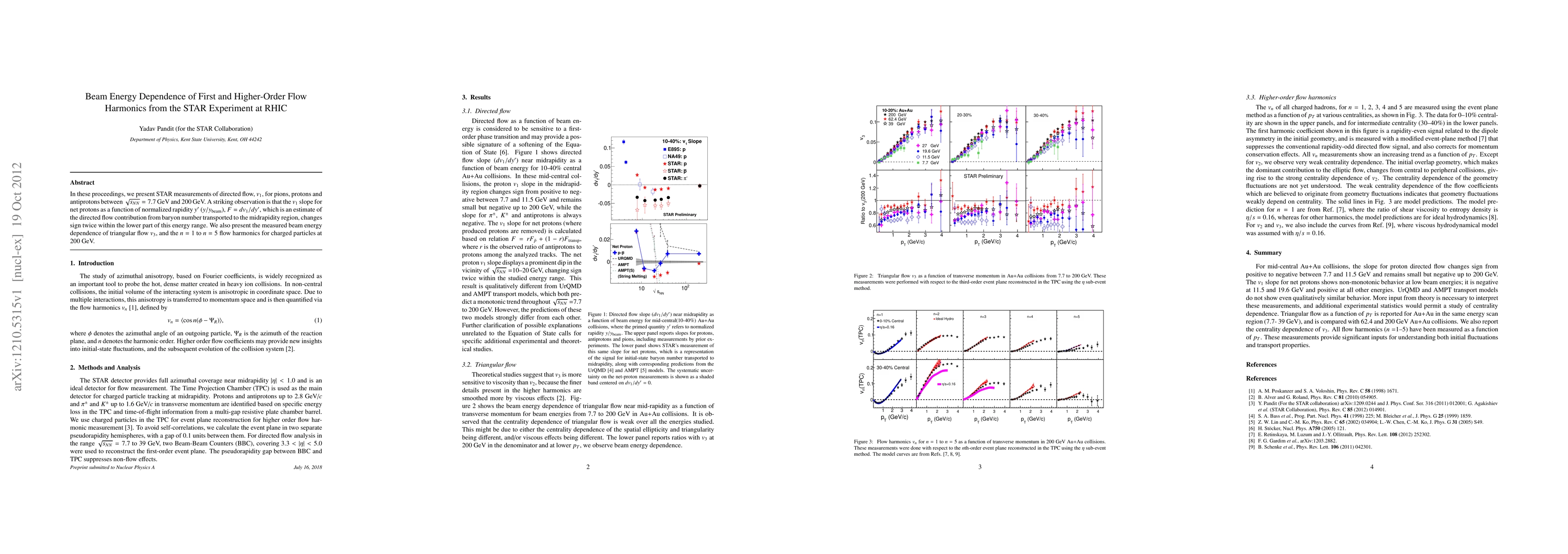 This STAR experiment at RHIC measured directed flow of pions, protons, and antiprotons across a range of energies, revealing two sign changes in the slope of proton flow with rapidity. The study also explored beam energy dependence of higher-order flow harmonics.