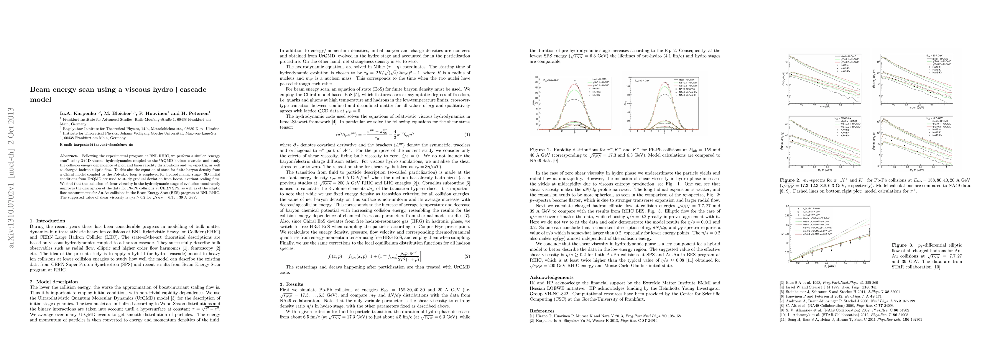 This study combines viscous hydrodynamics with a hadron cascade to analyze the energy dependence of pion and kaon distributions and elliptic flow in heavy-ion collisions. The inclusion of shear viscosity improves the model's accuracy, suggesting $\eta/s\ge0.2$ for the given energy range.
