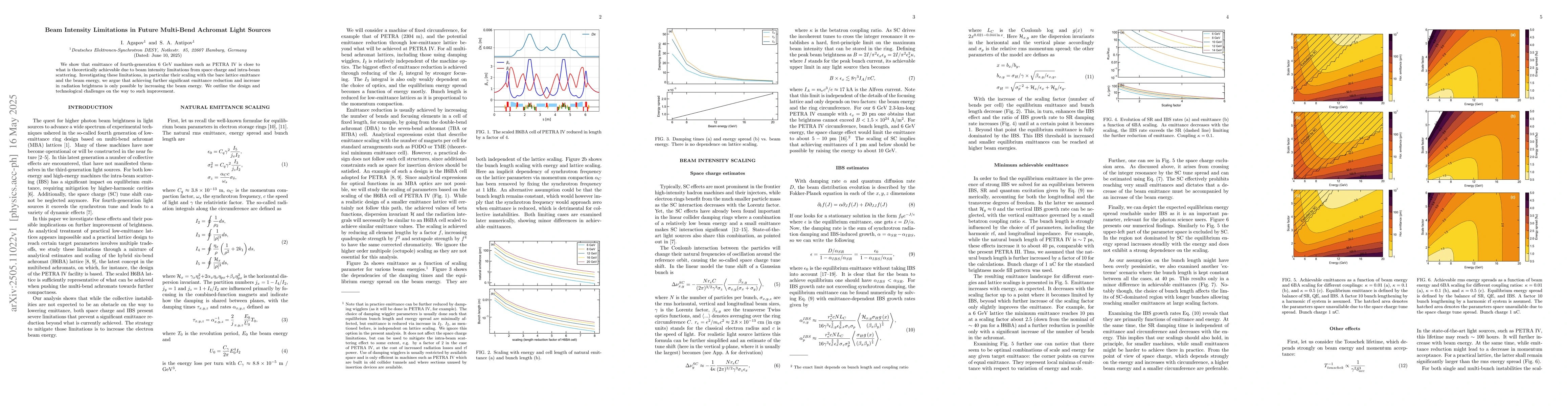 The paper investigates beam intensity limitations in multi-bend achromat light sources through theoretical analysis and consideration of space charge and intra-beam scattering effects.