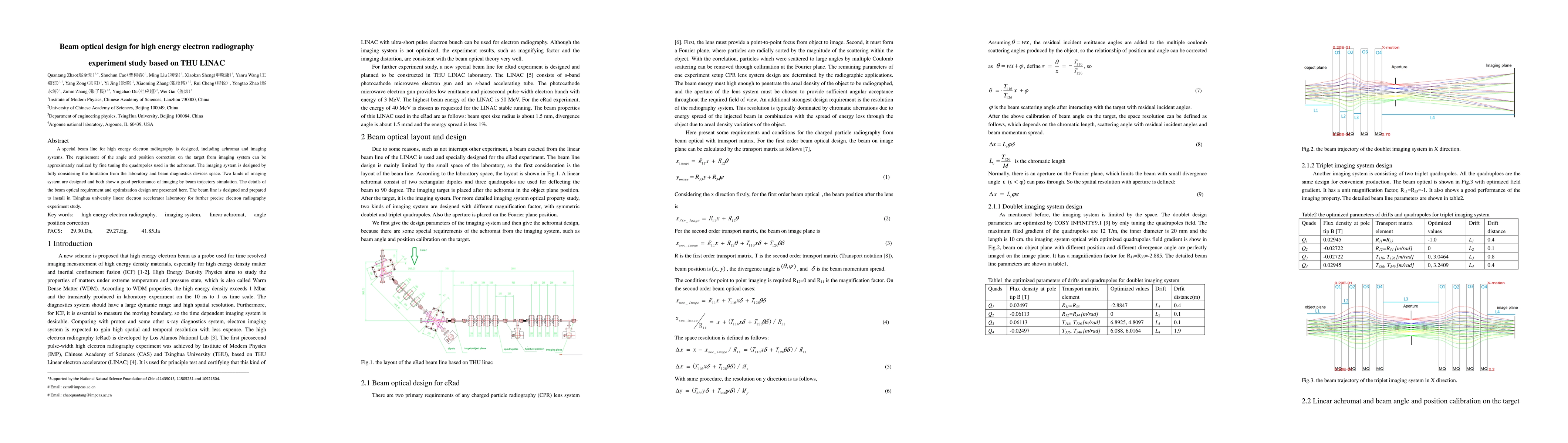 Researchers designed a beam optical system for high-energy electron radiography at Tsinghua University, optimizing quadrupoles to correct imaging system errors and improving performance through simulation and testing.
