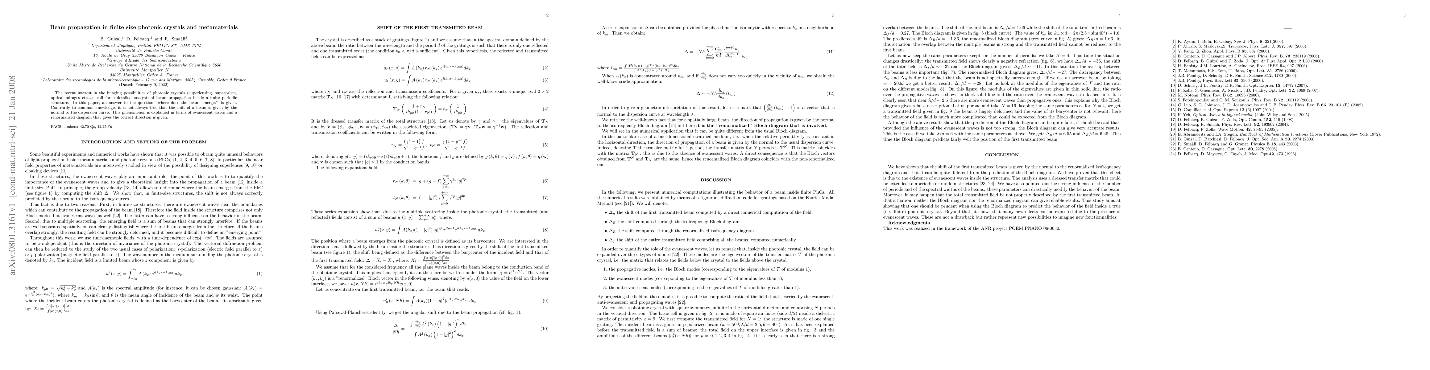 This paper investigates beam propagation in finite-size photonic crystals and metamaterials, challenging the common assumption that beam shift is always normal to the dispersion curve. It introduces a renormalized diagram to accurately predict beam emergence direction, emphasizing the role of evanescent waves.