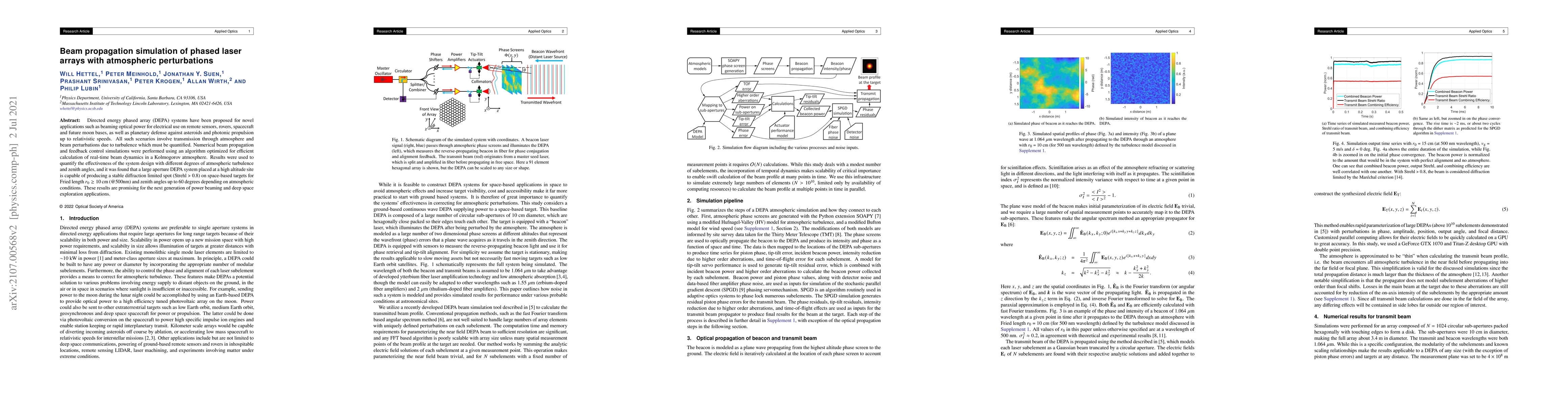 This paper simulates the beam propagation of phased laser arrays through atmospheric turbulence, finding that large aperture DEPA systems at high altitudes can maintain stable, diffraction-limited spots for space-based targets under various atmospheric conditions, promising advancements in power beaming and deep space exploration.