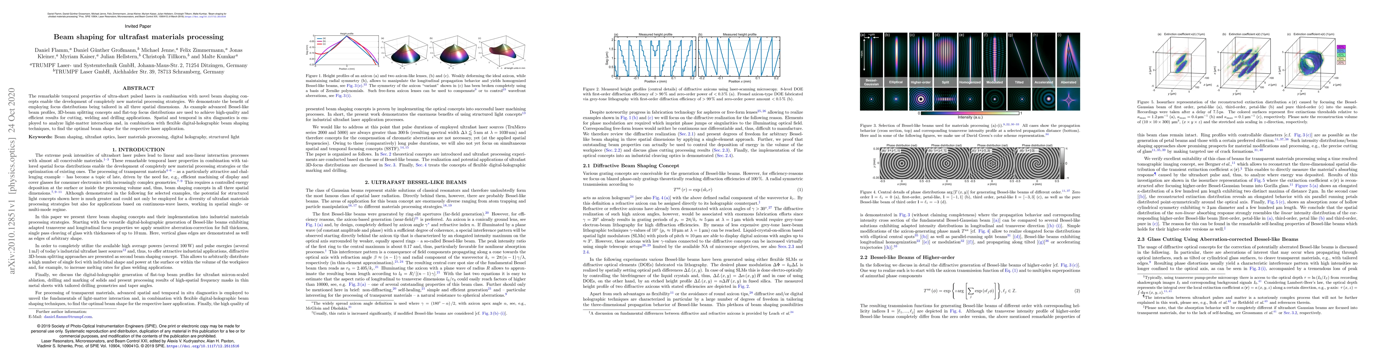 The paper presents a methodology for generating and optimizing ultra-short pulsed laser beams with tailored 3D focus distributions using digital holography, enabling precise material processing.
