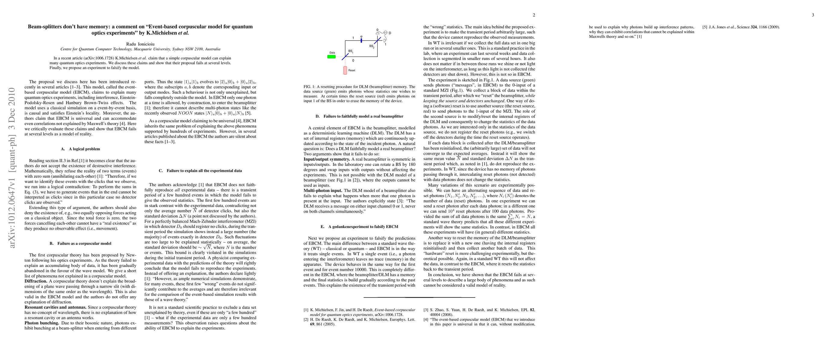 In a recent article (arXiv:1006.1728) K.Michielsen et al. claim that a simple corpuscular model can explain many quantum optics experiments. We discuss these claims and show that their proposal fails at several levels. Finally, we propose an experiment to falsify the model.