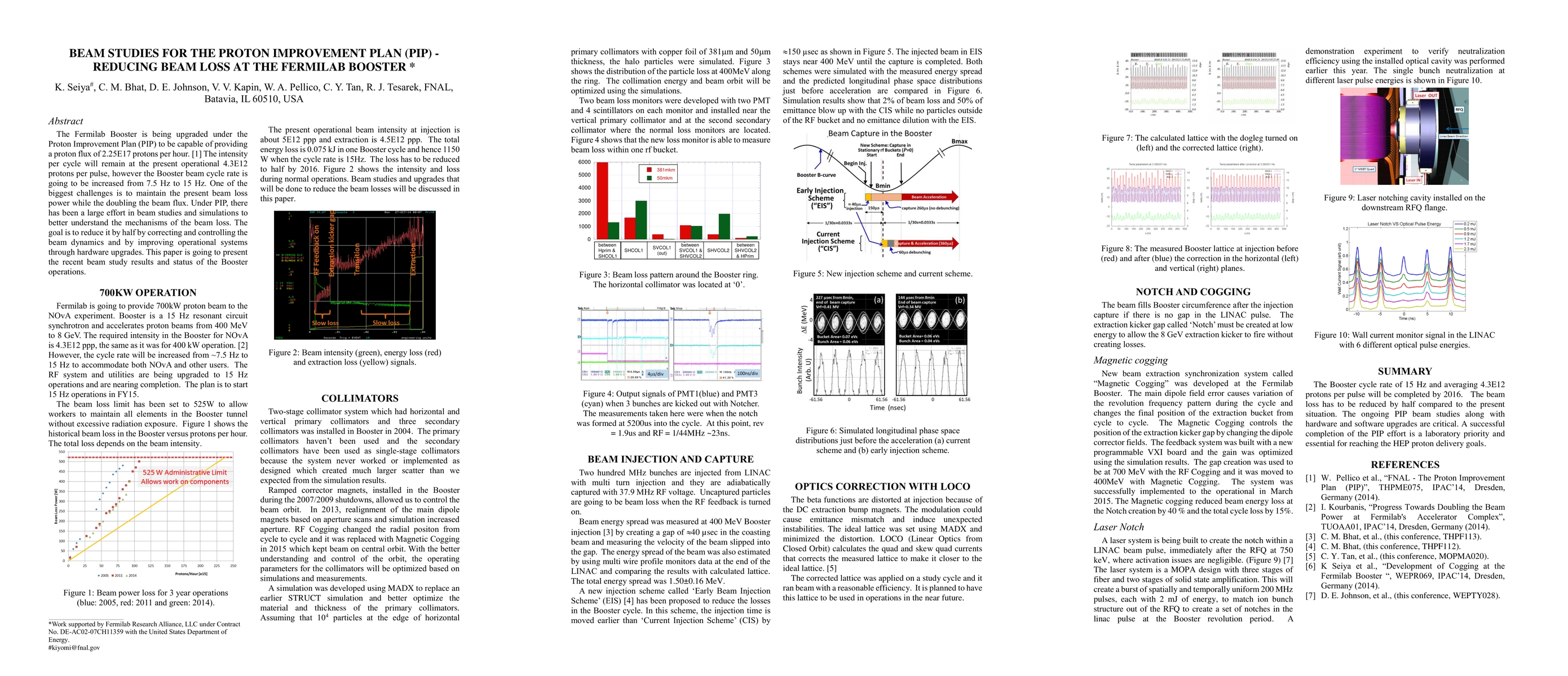 This paper discusses beam studies under the Proton Improvement Plan (PIP) to upgrade the Fermilab Booster, aiming to double proton flux while halving beam loss. The focus is on enhancing beam dynamics and operational systems through simulations and hardware upgrades.