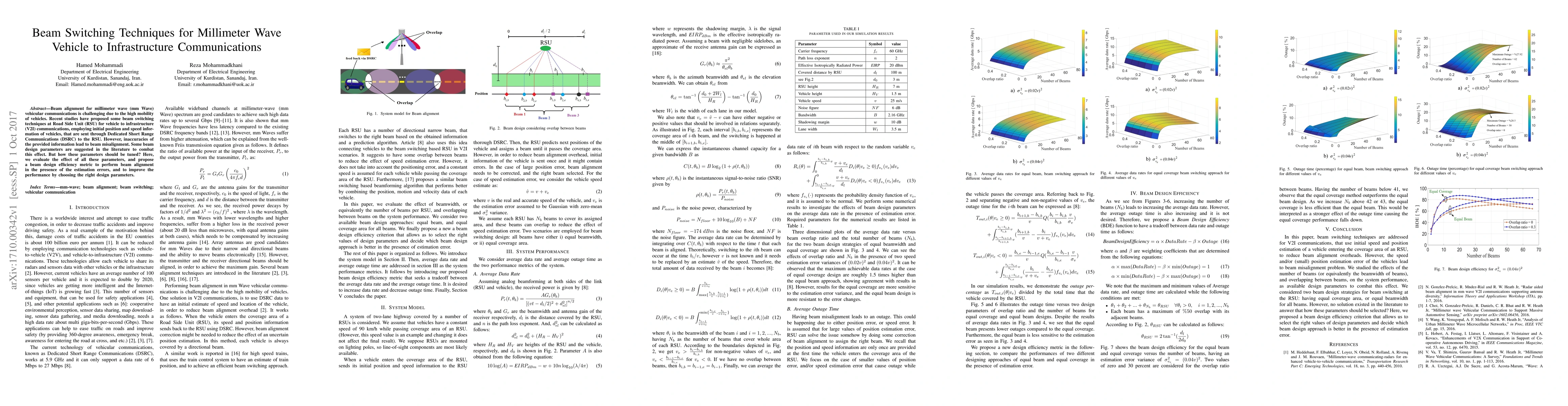 Beam alignment for millimeter wave (mm Wave) vehicular communications is challenging due to the high mobility of vehicles. Recent studies have proposed some beam switching techniques at Road Side Unit (RSU) for vehicle to infrastructure (V2I) communications, employing initial position and speed information of vehicles, that are sent through Dedicated Short Range Communications (DSRC) to the RSU. However, inaccuracies of the provided information lead to beam misalignment. Some beam design parameters are suggested in the literature to combat this effect. But how these parameters should be tuned? Here, we evaluate the effect of all these parameters, and propose a beam design efficiency metric to perform beam alignment in the presence of the estimation errors, and to improve the performance by choosing the right design parameters.