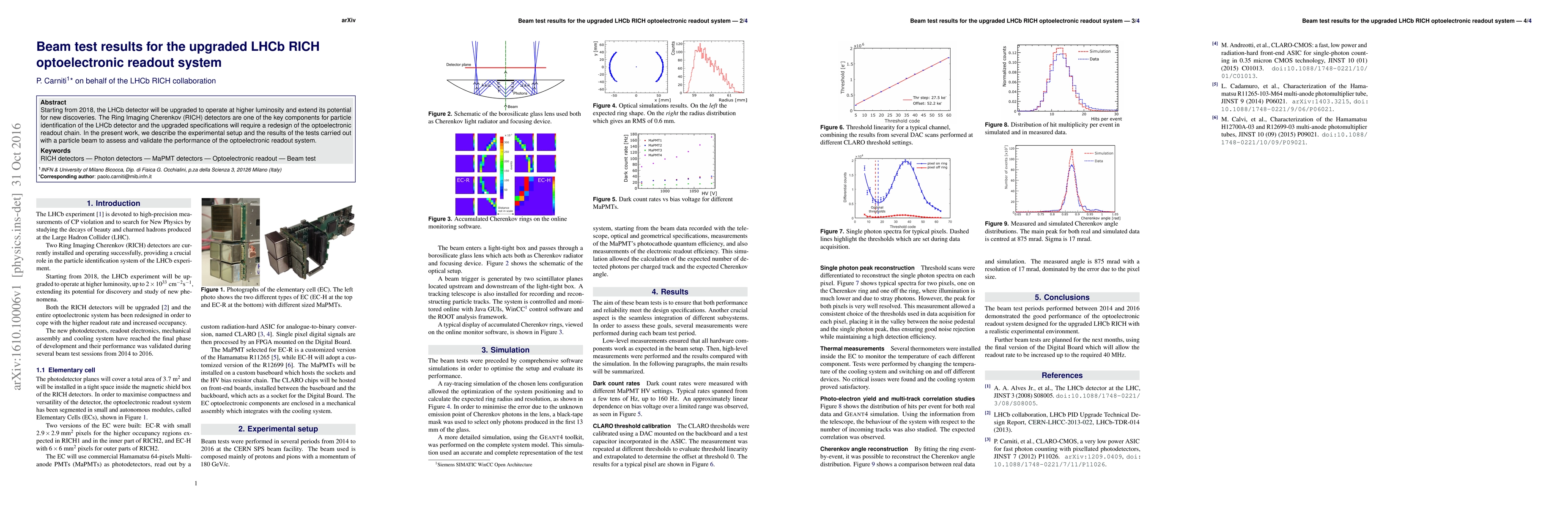 This paper reports on the beam test results for the upgraded LHCb RICH optoelectronic readout system, which is essential for particle identification at higher luminosity. The tests validated the redesigned readout system's performance for the LHCb detector's upgrade starting in 2018.