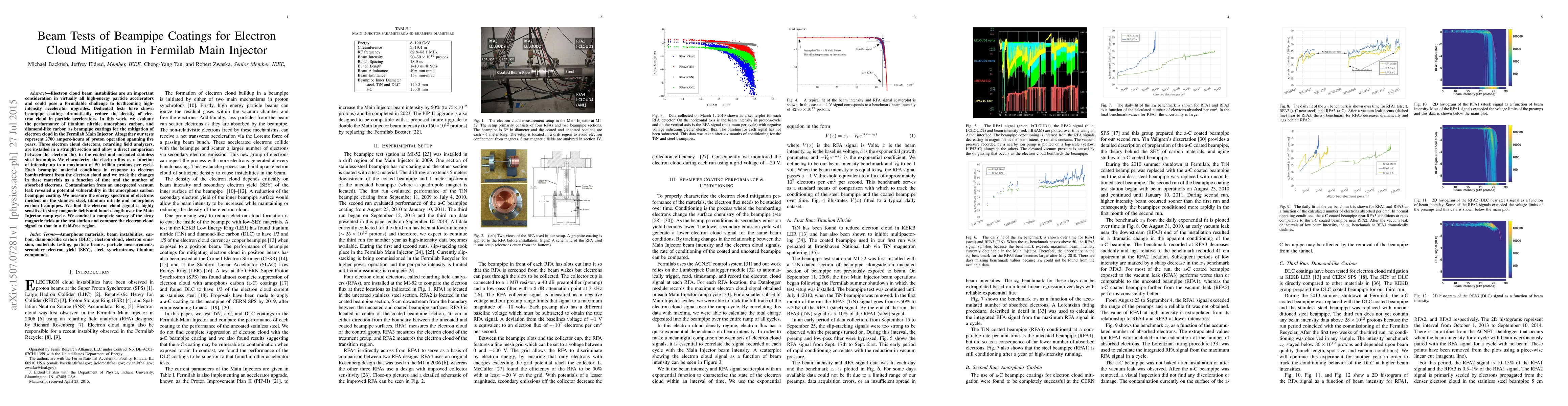 Electron cloud beam instabilities are an important consideration in virtually all high-energy particle accelerators and could pose a formidable challenge to forthcoming high-intensity accelerator upgrades. Dedicated tests have shown beampipe coatings dramatically reduce the density of electron cloud in particle accelerators. In this work, we evaluate the performance of titanium nitride, amorphous carbon, and diamond-like carbon as beampipe coatings for the mitigation of electron cloud in the Fermilab Main Injector. Altogether our tests represent 2700 ampere-hours of proton operation spanning five years. Three electron cloud detectors, retarding field analyzers, are installed in a straight section and allow a direct comparison between the electron flux in the coated and uncoated stainless steel beampipe. We characterize the electron flux as a function of intensity up to a maximum of 50 trillion protons per cycle. Each beampipe material conditions in response to electron bombardment from the electron cloud and we track the changes in these materials as a function of time and the number of absorbed electrons. Contamination from an unexpected vacuum leak revealed a potential vulnerability in the amorphous carbon beampipe coating. We measure the energy spectrum of electrons incident on the stainless steel, titanium nitride and amorphous carbon beampipes. We find the electron cloud signal is highly sensitive to stray magnetic fields and bunch-length over the Main Injector ramp cycle. We conduct a complete survey of the stray magnetic fields at the test station and compare the electron cloud signal to that in a field-free region.
