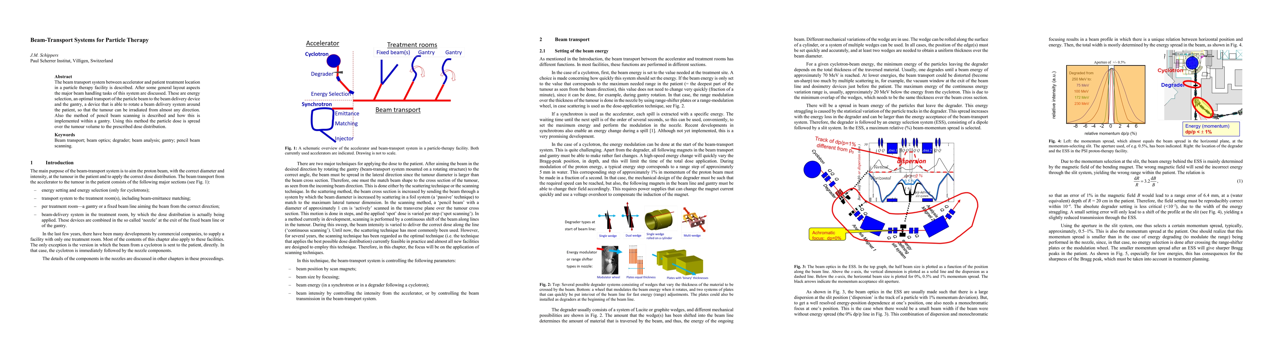 A beam transport system for particle therapy is designed to deliver precise doses of radiation to cancer patients, using a gantry that rotates to direct the beam from various angles. The system enables pencil beam scanning, spreading the dose over the tumor volume for accurate treatment.