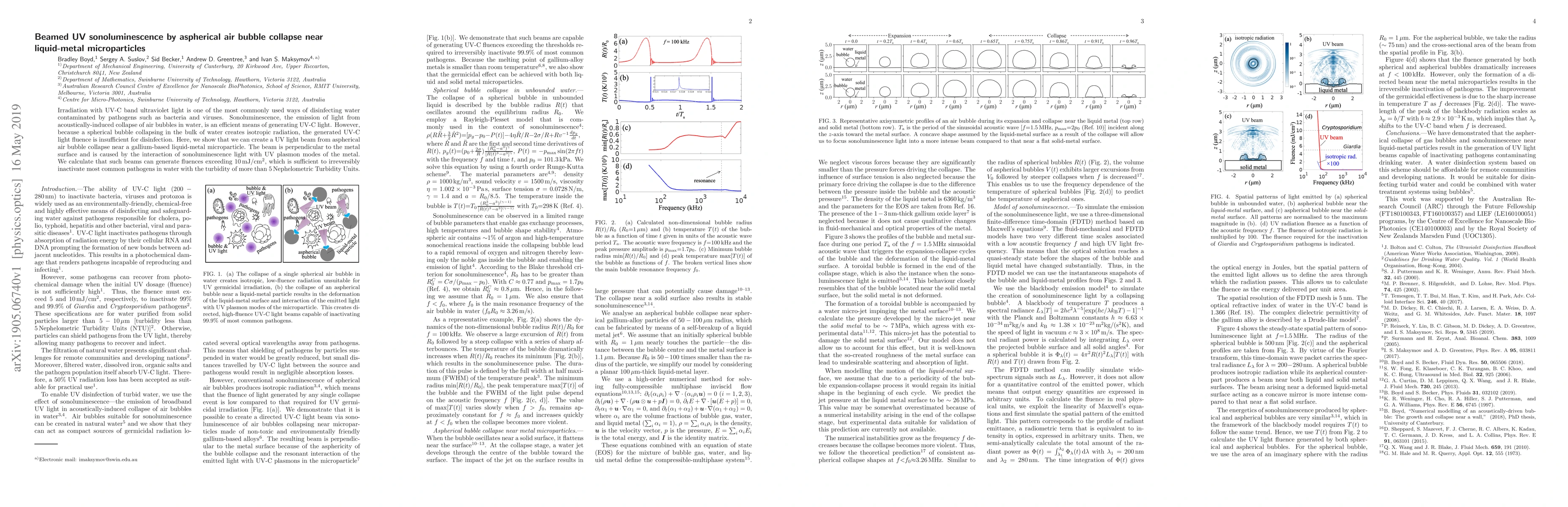 Researchers have created a method to generate UV-C light beams from aspherical air bubble collapse near liquid-metal microparticles, capable of disinfecting water with high fluence.