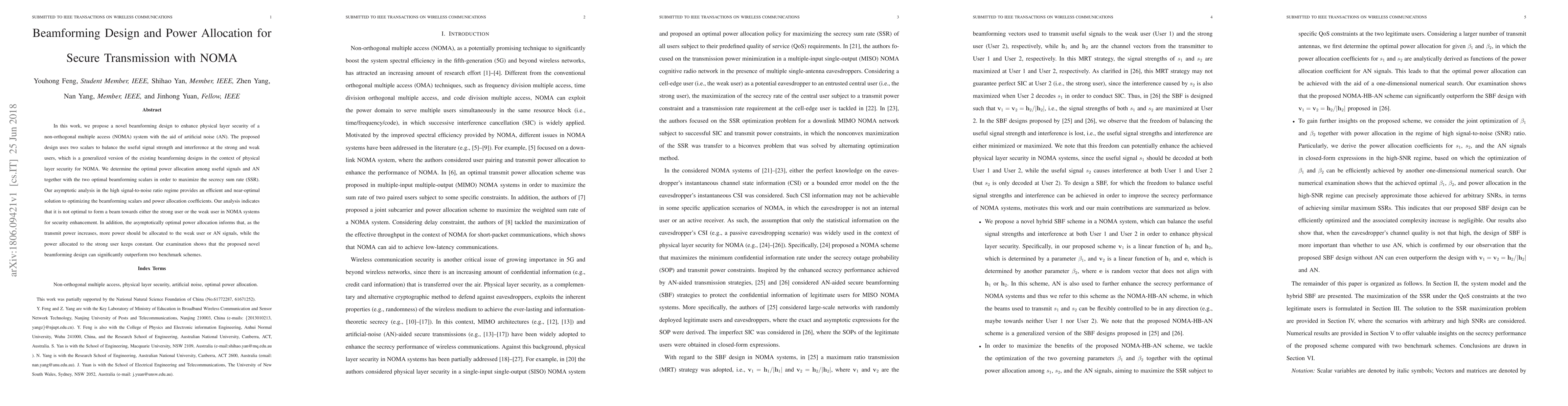 This paper proposes a novel beamforming design for enhancing physical layer security in NOMA systems using artificial noise, achieving optimal power allocation to maximize secrecy sum rate. The analysis reveals that balanced beamforming, rather than targeting strong or weak users exclusively, is more effective for security enhancement.