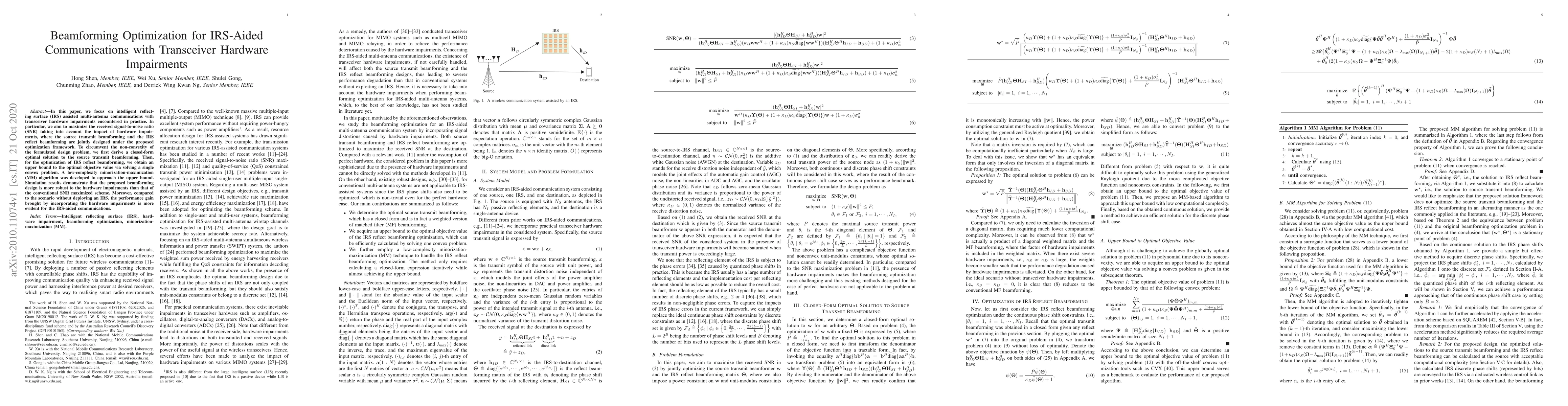 This paper optimizes beamforming for IRS-aided multi-antenna communications, considering transceiver hardware impairments, to maximize received SNR. It proposes a joint design of source and IRS beamforming, leveraging a closed-form solution and a low-complexity MM algorithm to handle non-convexity, demonstrating improved robustness and performance gains over conventional methods.
