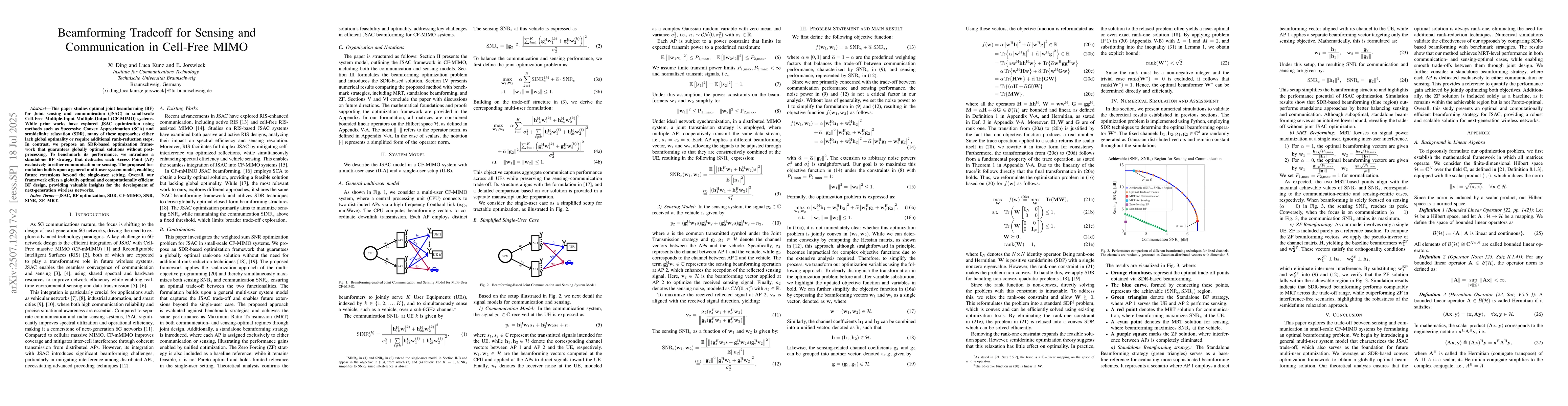 This paper studies optimal joint beamforming (BF) for joint sensing and communication (JSAC) in small-scale cell-free MIMO (CF-MIMO) systems. While prior works have explored JSAC optimization using methods such as successive convex approximation (SCA) and semidefinite relaxation (SDR), many of these approaches either lack global optimality or require additional rank-reduction steps. In contrast, we propose an SDR-based optimization framework that guarantees globally optimal solutions without post-processing. To benchmark its performance, we introduce a standalone BF strategy that dedicates each access point (AP) exclusively to either communication or sensing. The proposed formulation builds upon a general multi-user system model, enabling future extensions beyond the single-user setting. Overall, our framework offers a globally optimal and computationally efficient BF design, providing valuable insights for the development of next-generation wireless networks.