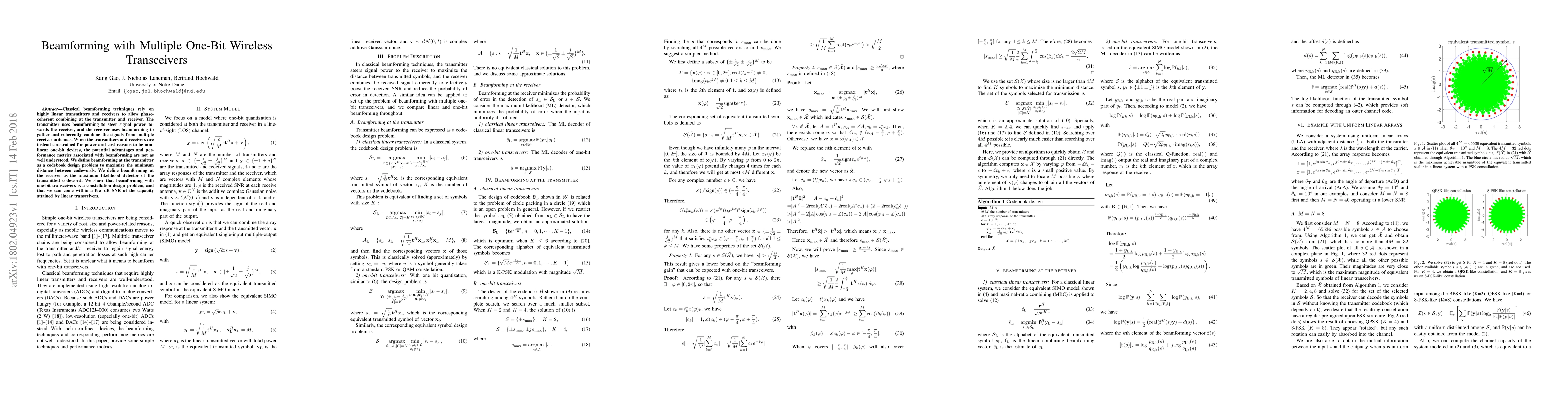 This paper explores beamforming techniques using non-linear one-bit transceivers, defining transmitter beamforming as a codebook design problem and receiver beamforming as a maximum likelihood detector. It demonstrates that such one-bit transceivers can achieve performance close to that of linear transceivers, within a few dB of signal-to-noise ratio (SNR) capacity.