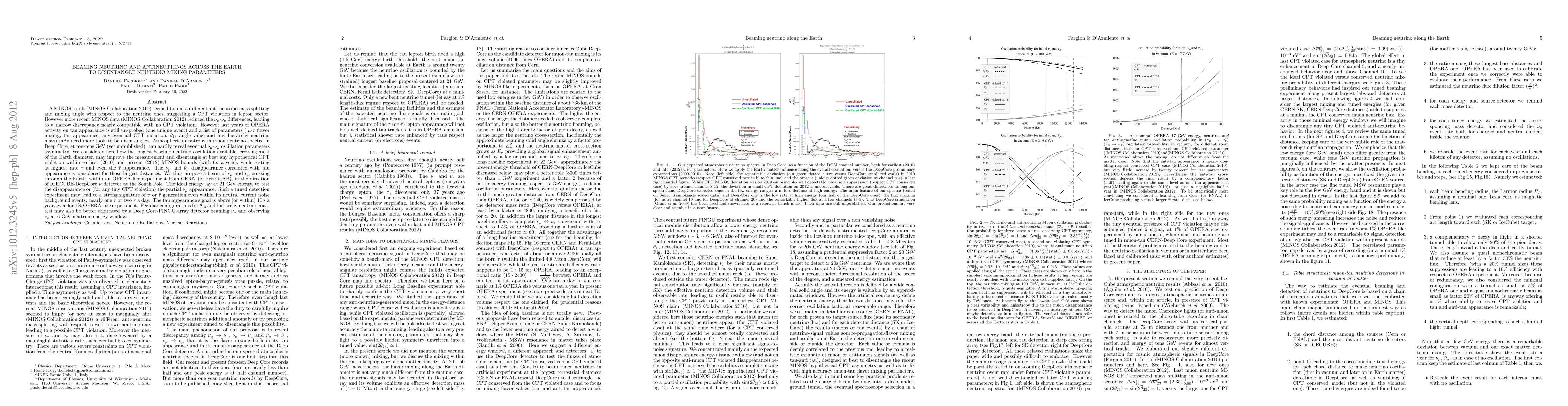 This paper proposes a neutrino oscillation experiment using a long-baseline beam from CERN to the ICECUBE-Deep Core detector to detect minute CPT violation and tau appearance, potentially observing nearly one antitau or two taus daily. It suggests that such an experiment could provide a clear signature of tau or anti-tau generation, enhancing the understanding of muon-tau mixing and neutrino mass hierarchy.
