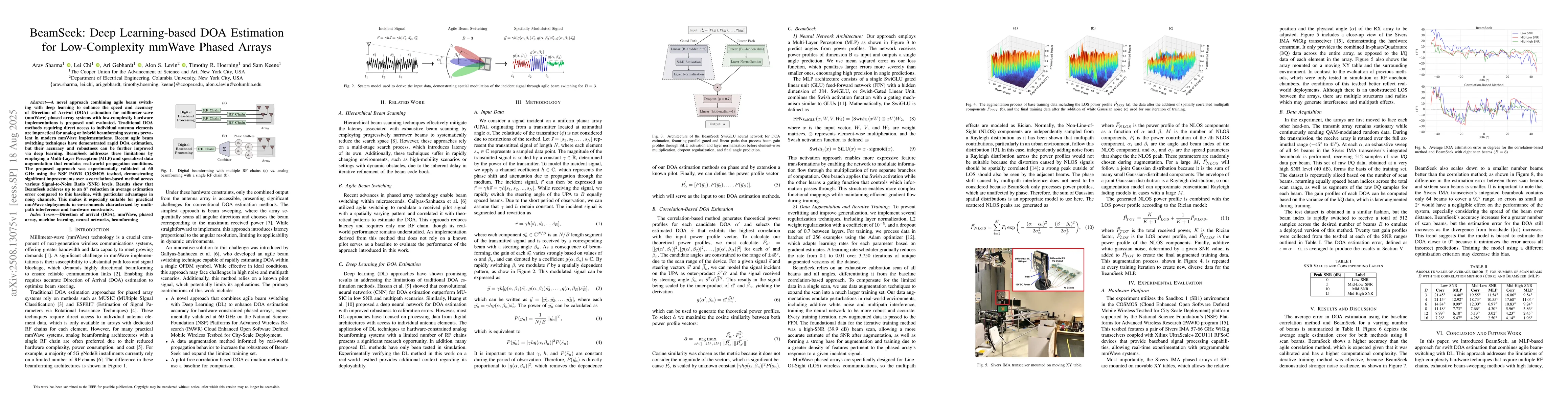 A novel approach combining agile beam switching with deep learning to enhance the speed and accuracy of Direction of Arrival (DOA) estimation for millimeter-wave (mmWave) phased array systems with low-complexity hardware implementations is proposed and evaluated. Traditional DOA methods requiring direct access to individual antenna elements are impractical for analog or hybrid beamforming systems prevalent in modern mmWave implementations. Recent agile beam switching techniques have demonstrated rapid DOA estimation, but their accuracy and robustness can be further improved via deep learning. BeamSeek addresses these limitations by employing a Multi-Layer Perceptron (MLP) and specialized data augmentation that emulates real-world propagation conditions. The proposed approach was experimentally validated at 60 GHz using the NSF PAWR COSMOS testbed, demonstrating significant improvements over a correlation-based method across various Signal-to-Noise Ratio (SNR) levels. Results show that BeamSeek achieves up to an 8 degree reduction in average estimation error compared to this baseline, with particular advantages in noisy channels. This makes it especially suitable for practical mmWave deployments in environments characterized by multipath interference and hardware constraints.