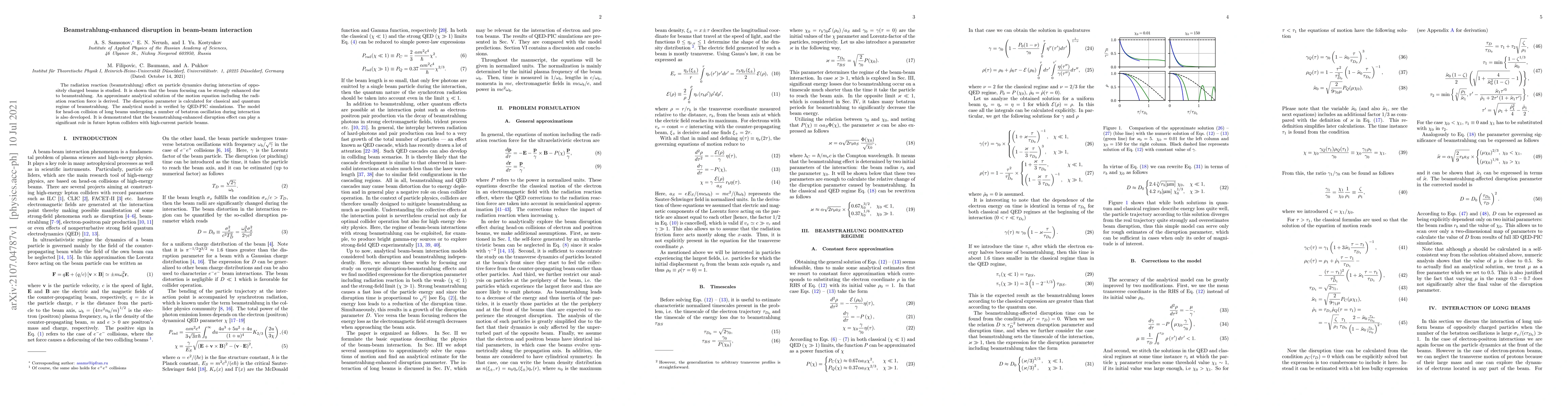 The paper investigates how radiation from colliding particle beams (beamstrahlung) impacts their focusing, revealing significant enhancement due to this effect. Verified through simulations, the findings suggest that beamstrahlung-induced disruption could greatly influence future high-current lepton colliders.