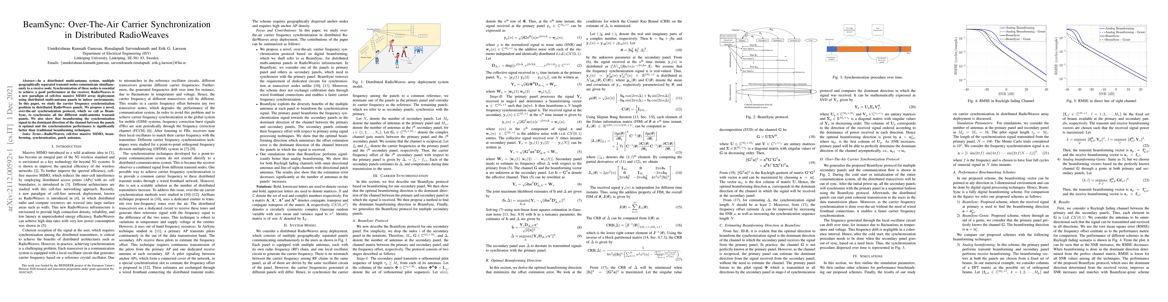 BeamSync is a novel over-the-air synchronization protocol for distributed RadioWeave panels in multi-antenna systems. It optimizes synchronization performance by beamforming the synchronization signal in the dominant channel direction, outperforming traditional techniques.