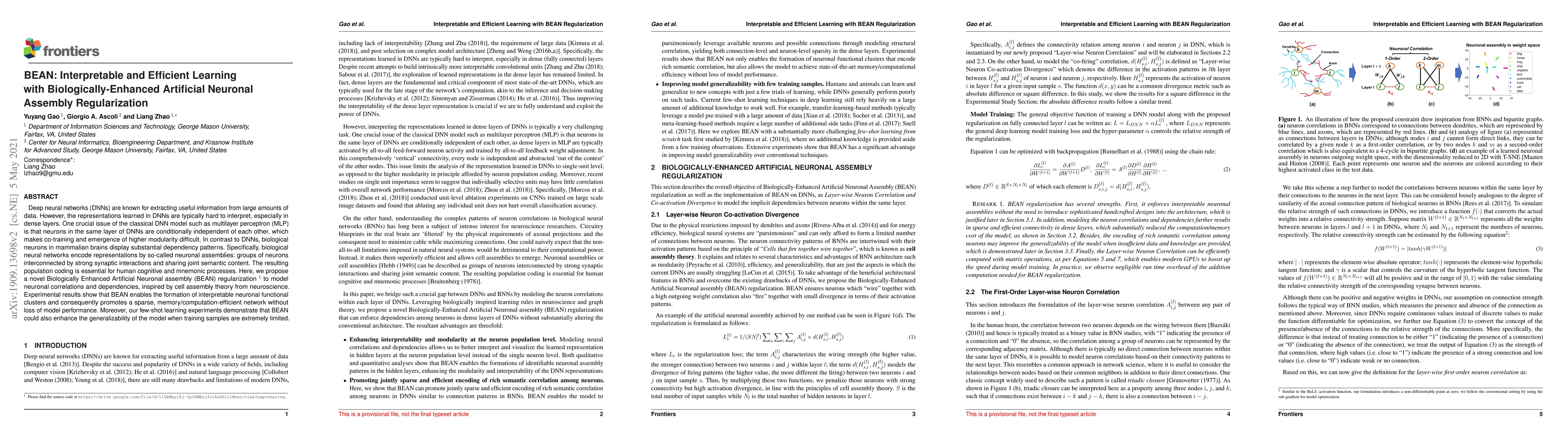 The research introduces BEAN, a novel regularization method for deep neural networks inspired by biological neuronal assemblies. BEAN facilitates the formation of interpretable neuronal clusters, promotes network sparsity, and maintains performance. It also enhances few-shot learning capabilities by improving model generalizability.