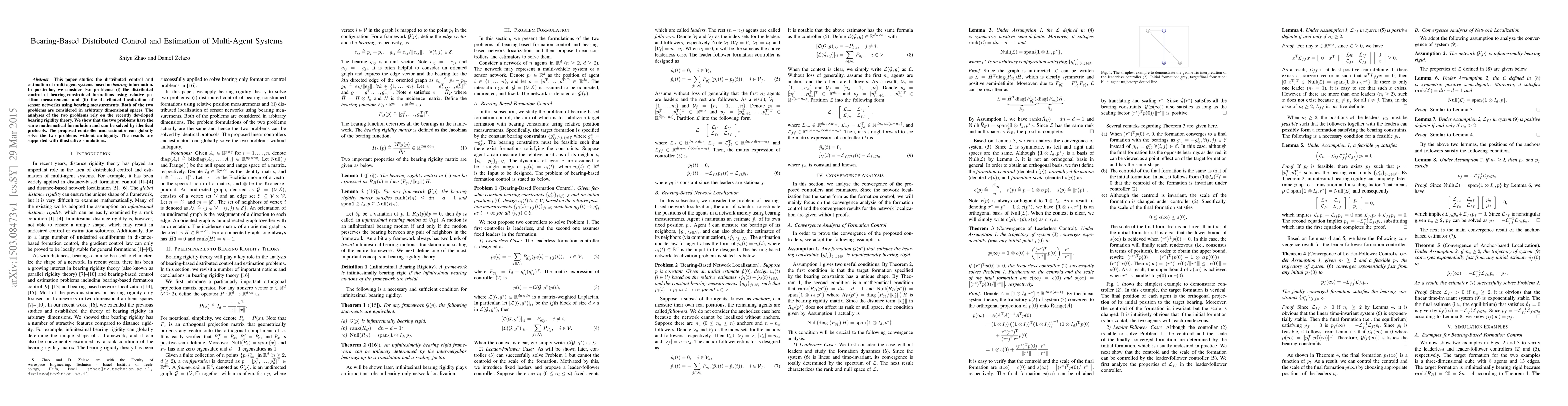 This paper proposes distributed control and estimation protocols for multi-agent systems using bearing information, addressing both formation control and localization in arbitrary dimensions. The solutions leverage bearing rigidity theory and are demonstrated to be globally effective through simulations.