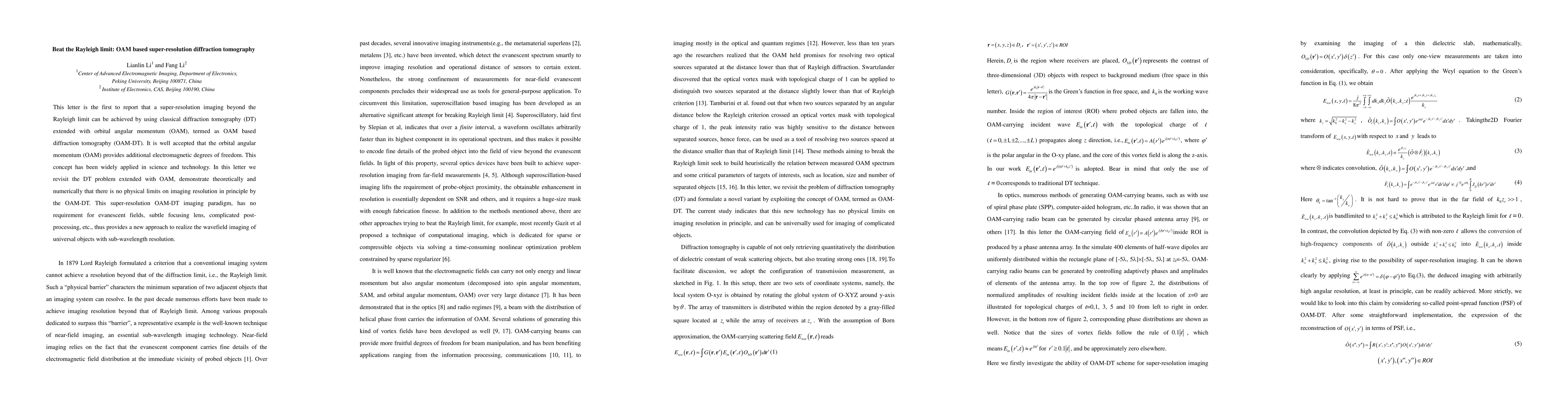 The introduction of OAM to classical diffraction tomography to achieve super-resolution imaging beyond the Rayleigh limit.