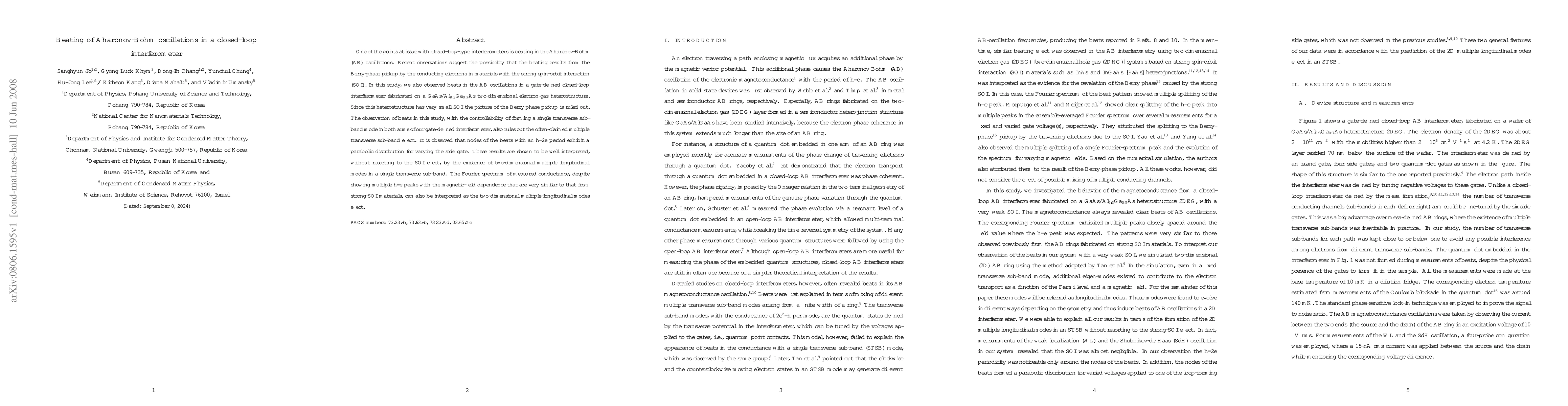This study observes beating in Aharonov-Bohm oscillations in a gate-defined closed-loop interferometer on a GaAs/AlGaAs heterostructure with minimal spin-orbit interaction, ruling out the Berry-phase pickup explanation. The observed h/2e period nodes and Fourier spectrum suggest the presence of two-dimensional multiple longitudinal modes in a single transverse subband.