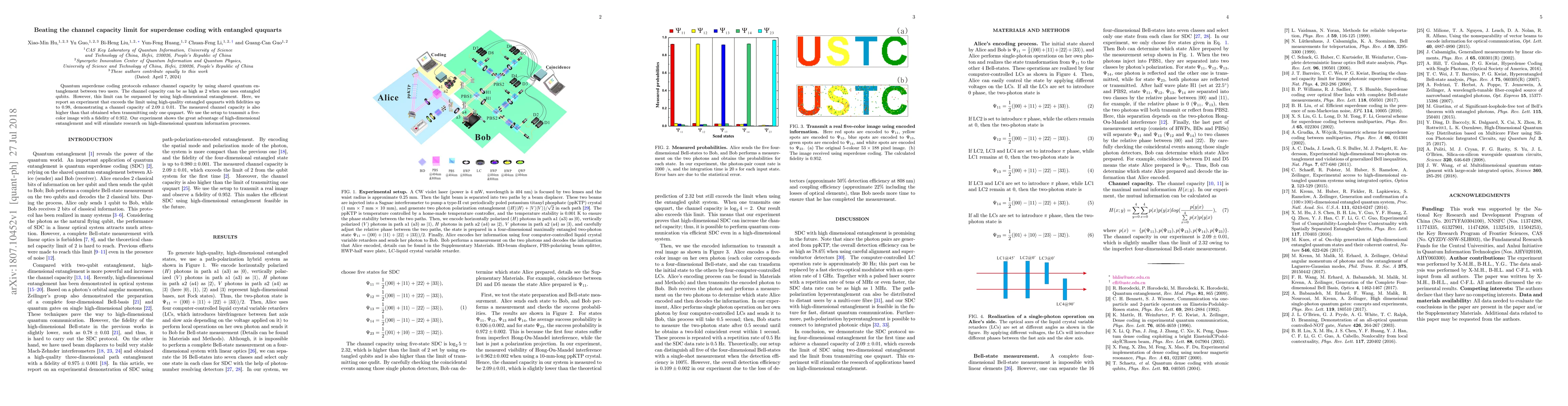 Researchers have successfully transmitted a five-color image with high-dimensional entangled ququarts, exceeding the theoretical channel capacity limit of 2 and achieving a capacity of $2.09 extpm0.01$.