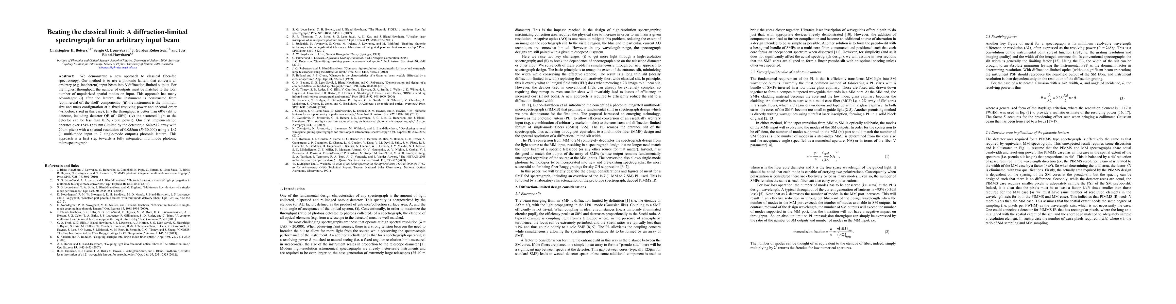 This paper introduces a photonic lantern technique to convert an arbitrary input beam into multiple diffraction-limited outputs, achieving high throughput and minimal size for fiber-fed spectroscopy. The method uses commercial components and demonstrates a compact, efficient spectrograph with over 60% throughput and less than 0.1% scattered light.
