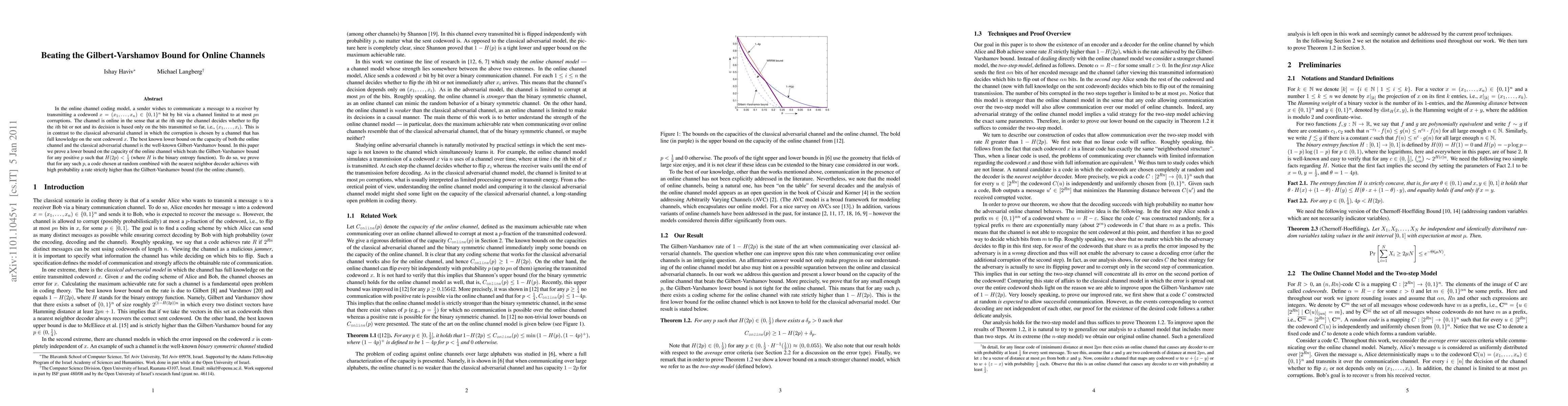 This paper demonstrates a new lower bound on the capacity of online channels, surpassing the traditional Gilbert-Varshamov bound for channels with a specific corruption rate. It shows that random codes paired with nearest neighbor decoding can achieve higher rates than previously thought possible.