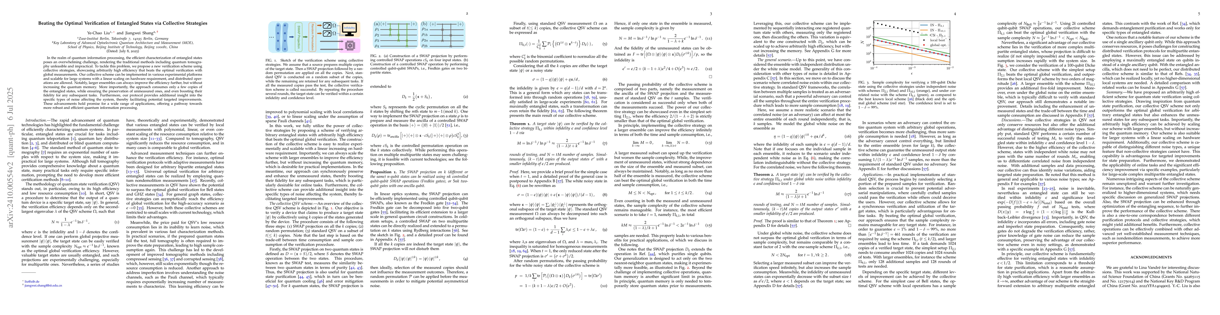 In the realm of quantum information processing, the efficient characterization of entangled states poses an overwhelming challenge, rendering the traditional methods including quantum tomography unfeasible and impractical. To tackle this problem, we propose a new verification scheme using collective strategies, showcasing arbitrarily high efficiency that beats the optimal verification with global measurements. Our collective scheme can be implemented in various experimental platforms and scalable for large systems with a linear scaling on hardware requirement, and distributed operations are allowed. Notably, larger ensembles can always improve the efficiency further, but without increasing the quantum memory. More importantly, the approach consumes only a few copies of the entangled states, while ensuring the preservation of unmeasured ones, and even boosting their fidelity for any subsequent tasks. Furthermore, our protocol provides additional insight into the specific types of noise affecting the system, thereby facilitating potential targeted improvements. These advancements hold promise for a wide range of applications, offering a pathway towards more robust and efficient quantum information processing.