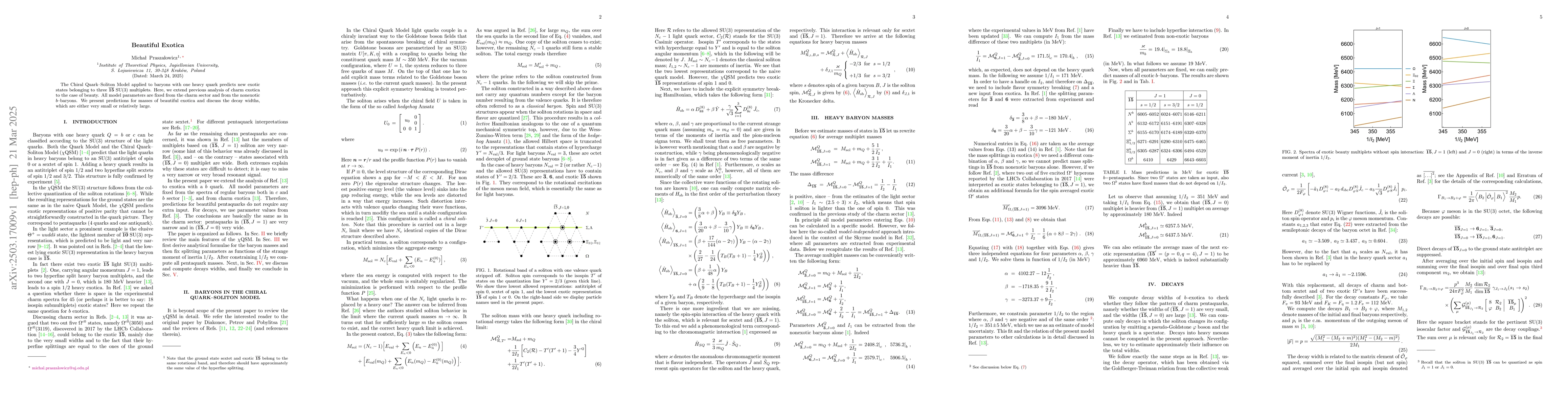 This work introduces predictions for beauty exotica, differentiating itself from previous charm-focused research.