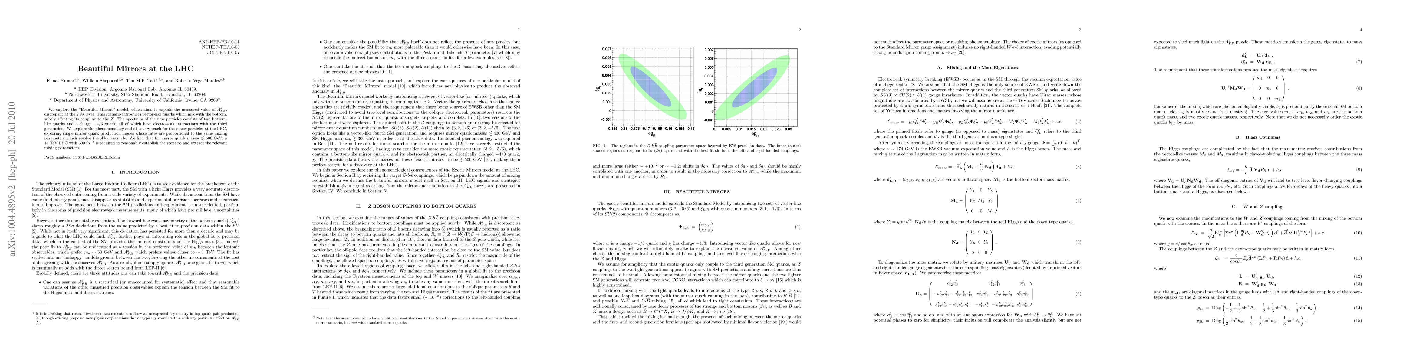 We explore the "Beautiful Mirrors" model, which aims to explain the measured value of $A^b_{FB}$, discrepant at the $2.9\sigma$ level. This scenario introduces vector-like quarks which mix with the bottom, subtly affecting its coupling to the $Z$. The spectrum of the new particles consists of two bottom-like quarks and a charge -4/3 quark, all of which have electroweak interactions with the third generation. We explore the phenomenology and discovery reach for these new particles at the LHC, exploring single mirror quark production modes whose rates are proportional to the same mixing parameters which resolve the $A_{FB}^b$ anomaly. We find that for mirror quark masses $\lesssim 500 GeV, a 14 TeV LHC with 300 {\rm fb}^{-1}$ is required to reasonably establish the scenario and extract the relevant mixing parameters.