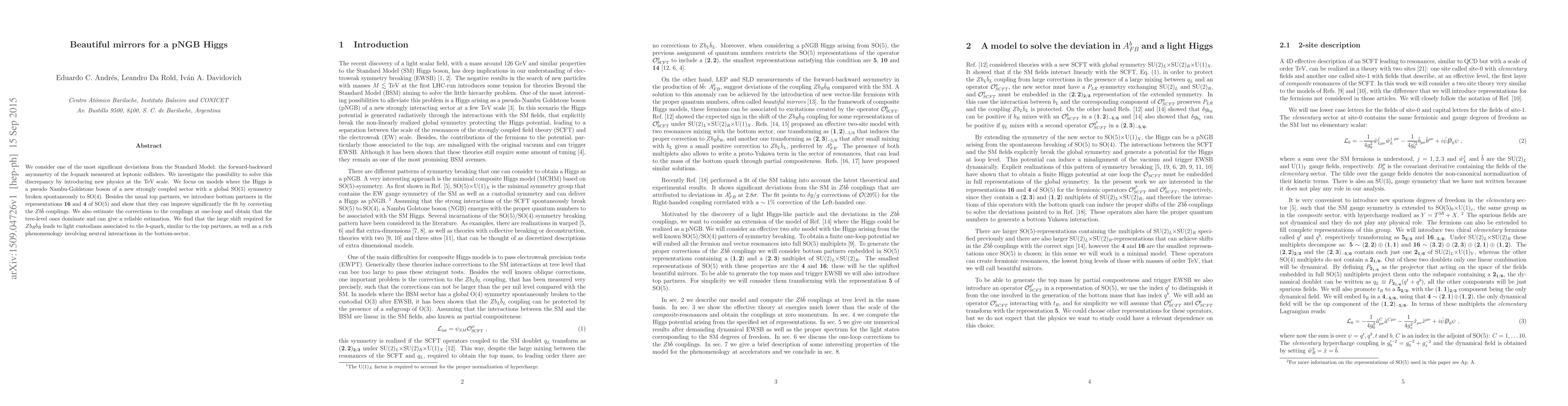 We consider one of the most significant deviations from the Standard Model: the forward-backward asymmetry of the b-quark measured at leptonic colliders. We investigate the possibility to solve this discrepancy by introducing new physics at the TeV scale. We focus on models where the Higgs is a pseudo Nambu-Goldstone boson of a new strongly coupled sector with a global SO(5) symmetry broken spontaneously to SO(4). Besides the usual top partners, we introduce bottom partners in the representations 16 and 4 of SO(5) and show that they can improve significantly the fit by correcting the Zbb couplings. We also estimate the corrections to the couplings at one-loop and obtain that the tree-level ones dominate and can give a reliable estimation. We find that the large shift required for Zb_Rb_R leads to light custodians associated to the b-quark, similar to the top partners, as well as a rich phenomenology involving neutral interactions in the bottom-sector.