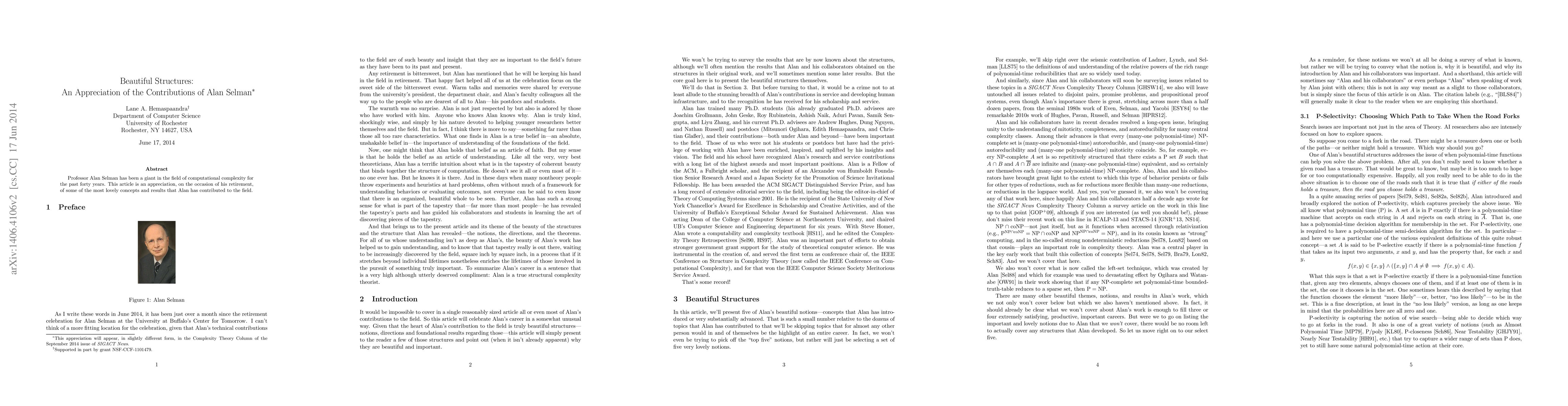 Professor Alan Selman has been a giant in the field of computational complexity for the past forty years. This article is an appreciation, on the occasion of his retirement, of some of the most lovely concepts and results that Alan has contributed to the field.