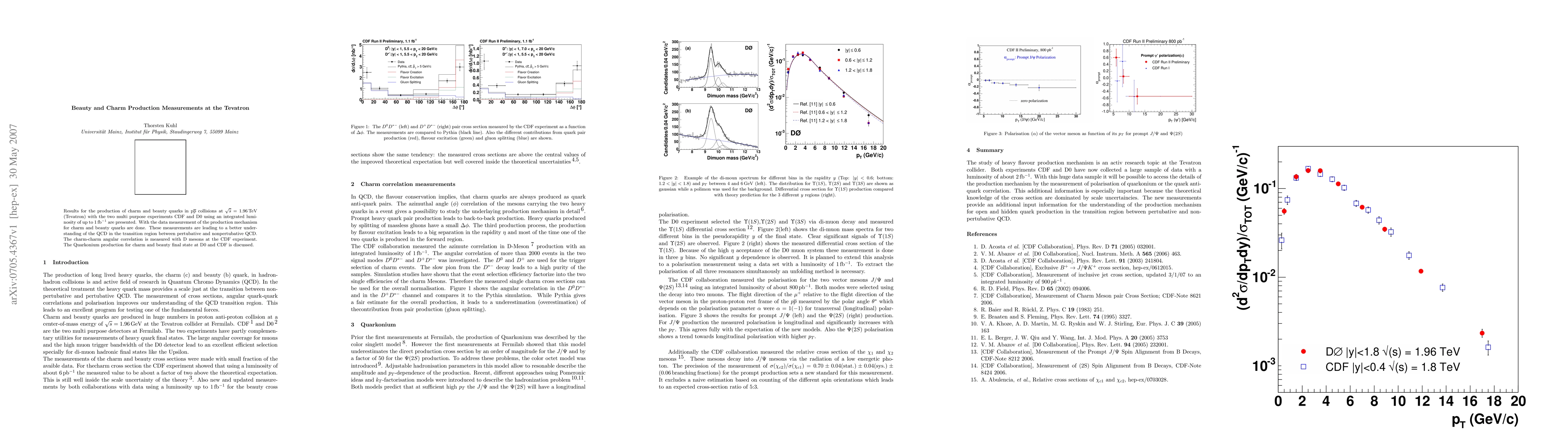 Results for the production of charm and beauty quarks in proton anti-proton collisions at ECM=1.96 TeV (Tevatron) with the two multi purpose experiments CDF and D0 using an integrated luminosity of up to 1 fb^-1 are presented. With the data measurement of the production me chanism for charm and beauty quarks are done. These measurements are leading to a better understanding of the QCD in the transition region between pertubative a nd nonpertubative QCD. The charm-charm angular correlation is measured with D me sons at the CDF experiment. The Quarkonium production for charm and beauty final state at D0 and CDF is discussed.