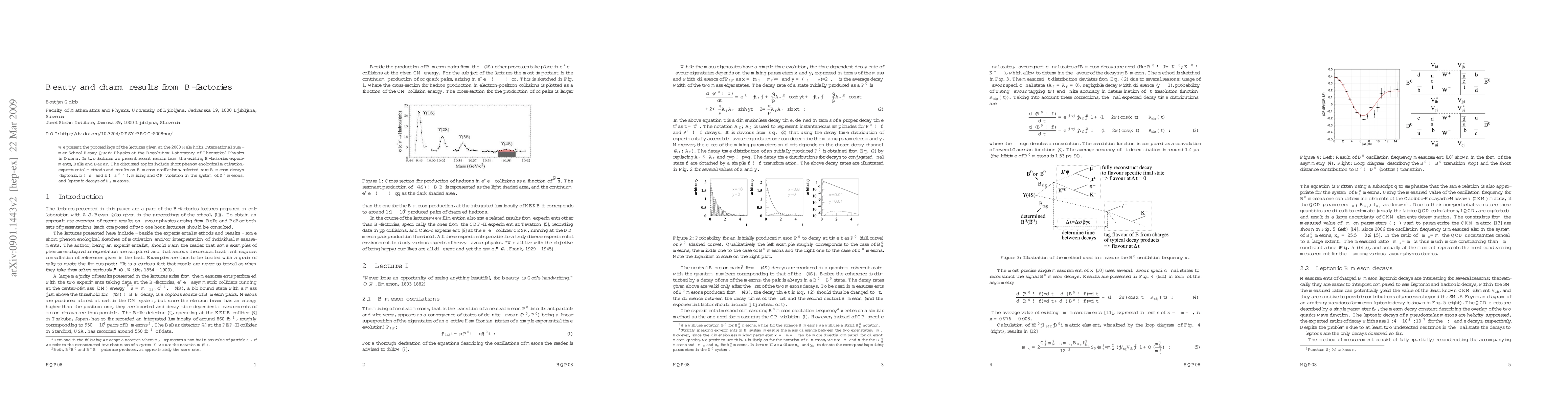 This paper summarizes lectures from the 2008 Helmholtz International Summer School on Heavy Quark Physics, presenting recent findings from the Belle and BaBar experiments on $B$-meson oscillations, rare decays, mixing, CP violation, and leptonic decays of $D_s$ mesons.