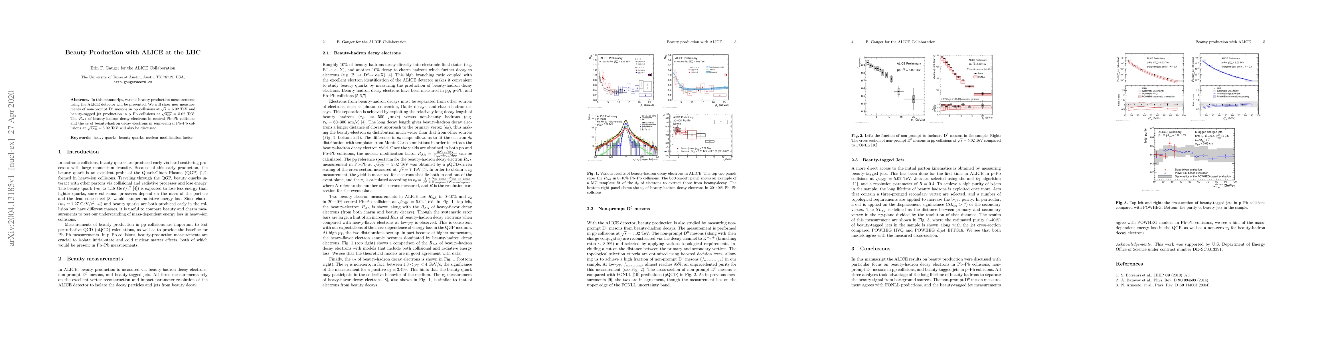 In this manuscript, various beauty production measurements using the ALICE detector will be presented. We will show new measurements of non-prompt D$^0$ mesons in pp collisions at $\sqrt{s} = 5.02$ TeV and beauty-tagged jet production in p--Pb collisions at $\sqrt{s_{\mathrm{NN}}} = 5.02$ TeV. The $R_{\mathrm{AA}}$ of beauty-hadron decay electrons in central Pb--Pb collisions and the $v_{2}$ of beauty-hadron decay electrons in semi-central Pb--Pb collisions at $\sqrt{s_{\mathrm{NN}}} = 5.02$ TeV will also be discussed.
