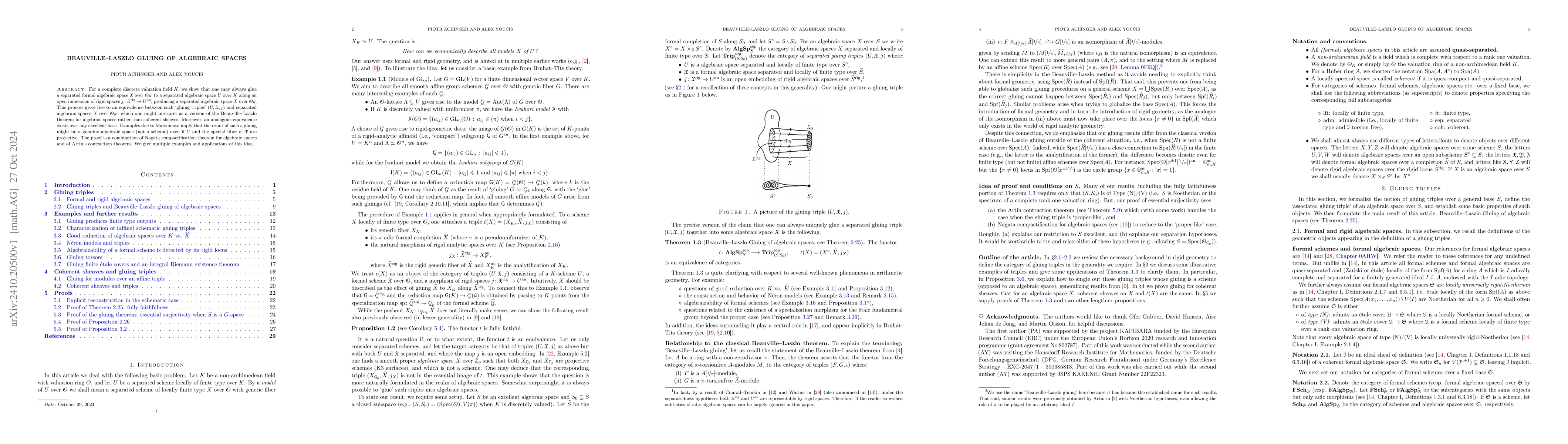 The paper introduces a gluing theorem for algebraic spaces over the p-adic ring of integers, extending the classical Beauville-Laszlo theorem for coherent sheaves.