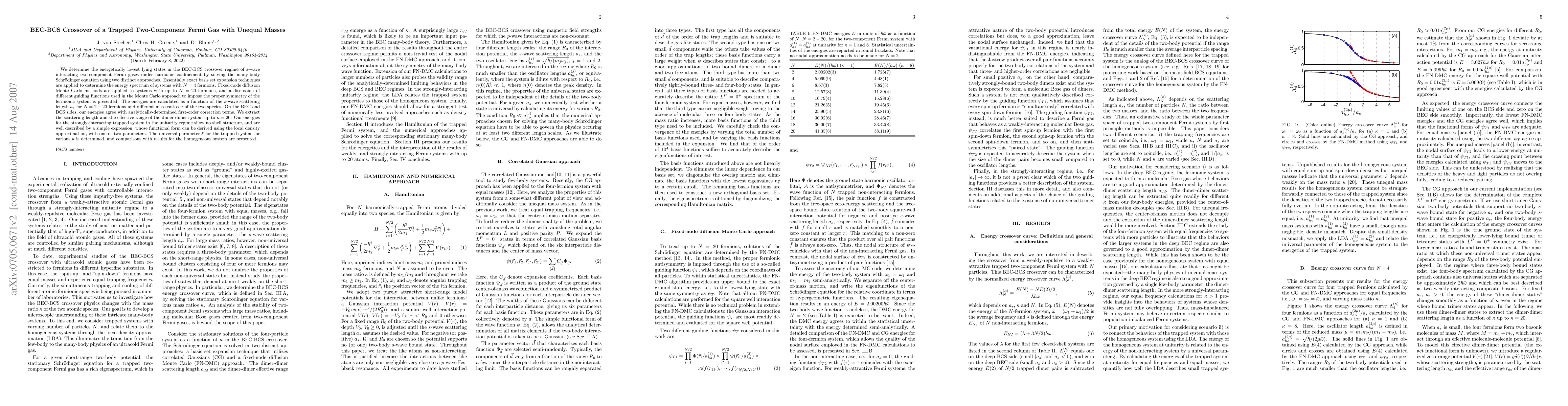 Researchers studied the behavior of a trapped two-component Fermi gas in the BEC-BCS crossover regime, finding that its energy spectrum can be accurately described using simple expressions with universal parameters, and that it lacks shell structure in the unitarity regime.