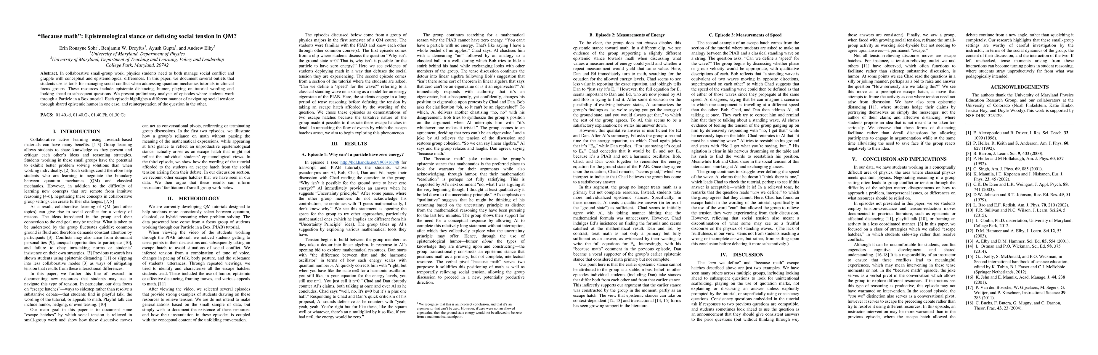 In collaborative small-group work, physics students need to both manage social conflict and grapple with conceptual and epistemological differences. In this paper, we document several outlets that students use as tools for managing social conflict when addressing quantum mechanics tutorials in clinical focus groups. These resources include epistemic distancing, humor, playing on tutorial wording and looking ahead to subsequent questions. We present preliminary analysis of episodes where students work through a Particle in a Box tutorial. Each episode highlights a different manner of navigating social tension: through shared epistemic humor in one case, and reinterpretation of the question in the other.