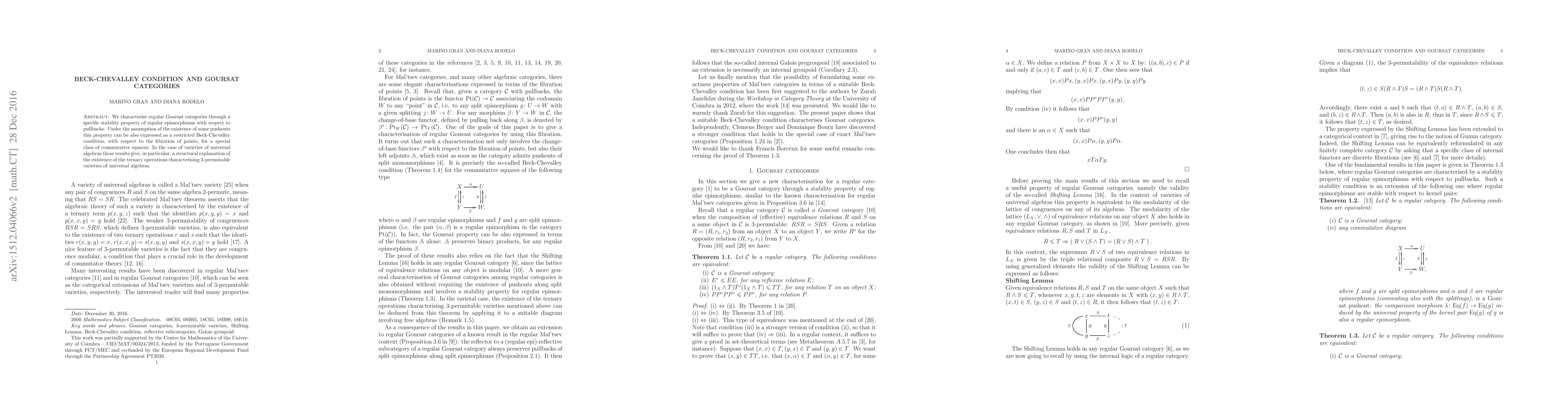 The paper characterizes regular Goursat categories using a stability property of regular epimorphisms in pullbacks, relating it to a restricted Beck-Chevalley condition and explaining the existence of ternary operations in $3$-permutable varieties of universal algebras.