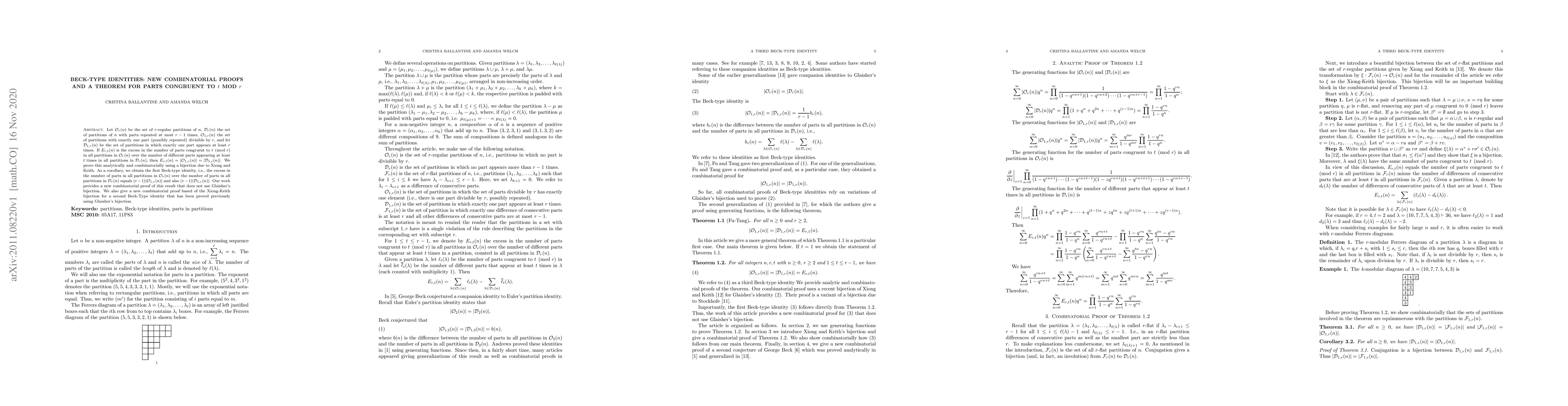 Let $\mathcal O_r(n)$ be the set of $r$-regular partitions of $n$, $\mathcal D_r(n)$ the set of partitions of $n$ with parts repeated at most $r-1$ times, $\mathcal O_{1,r}(n)$ the set of partitions with exactly one part (possibly repeated) divisible by $r$, and let $\mathcal D_{1,r}(n)$ be the set of partitions in which exactly one part appears at least $r$ times. If $E_{r, t}(n)$ is the excess in the number of parts congruent to $t \pmod r$ in all partitions in $\mathcal O_r(n)$ over the number of different parts appearing at least $t$ times in all partitions in $\mathcal D_r(n)$, then $E_{r, t}(n) = |\mathcal O_{1,r}(n)| = |\mathcal D_{1,r}(n)|$. We prove this analytically and combinatorially using a bijection due to Xiong and Keith. As a corollary, we obtain the first Beck-type identity, i.e., the excess in the number of parts in all partitions in $\mathcal{O}_r(n)$ over the number of parts in all partitions in $\mathcal{D}_r(n)$ equals $(r - 1)|\mathcal{O}_{1,r}(n)|$ and also $(r - 1)|\mathcal{D}_{1,r}(n)|$. Our work provides a new combinatorial proof of this result that does not use Glaisher's bijection. We also give a new combinatorial proof based of the Xiong-Keith bijection for a second Beck-Type identity that has been proved previously using Glaisher's bijection.
