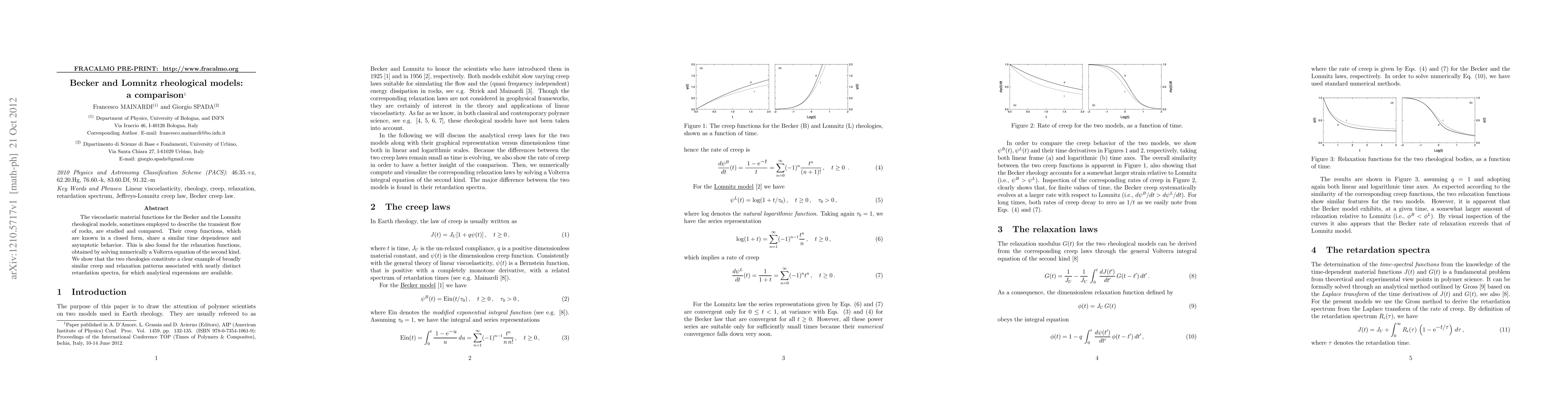 Researchers compared the viscoelastic material functions of two rheological models, finding similar time dependence and asymptotic behavior in their creep and relaxation functions. They also identified distinct retardation spectra with available analytical expressions.