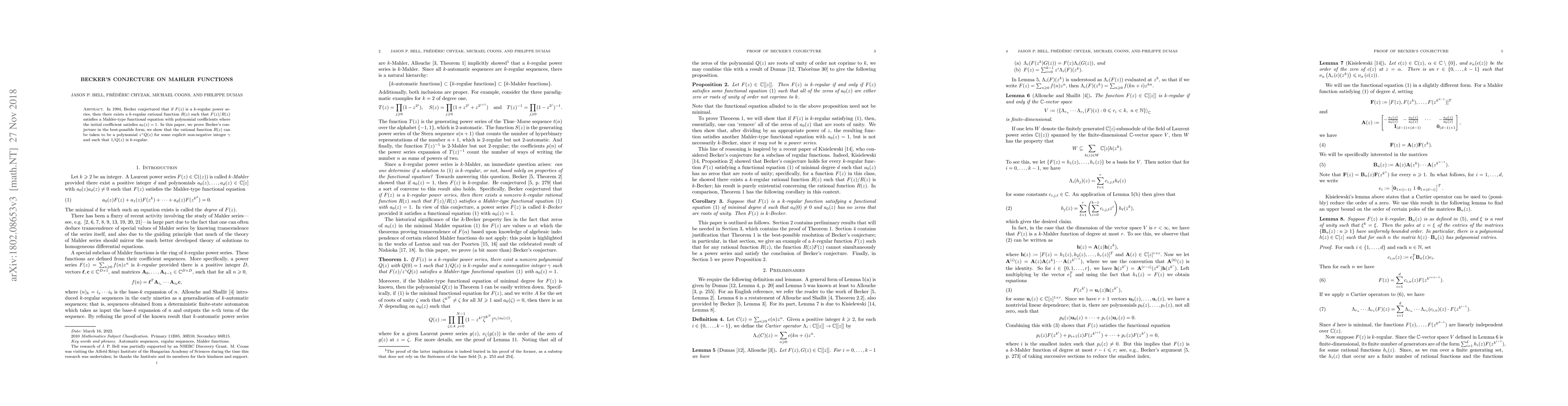 In 1994, Becker conjectured that if $F(z)$ is a $k$-regular power series, then there exists a $k$-regular rational function $R(z)$ such that $F(z)/R(z)$ satisfies a Mahler-type functional equation with polynomial coefficients where the initial coefficient satisfies $a_0(z)=1$. In this paper, we prove Becker's conjecture in the best-possible form; we show that the rational function $R(z)$ can be taken to be a polynomial $z^\gamma Q(z)$ for some explicit non-negative integer $\gamma$ and such that $1/Q(z)$ is $k$-regular.