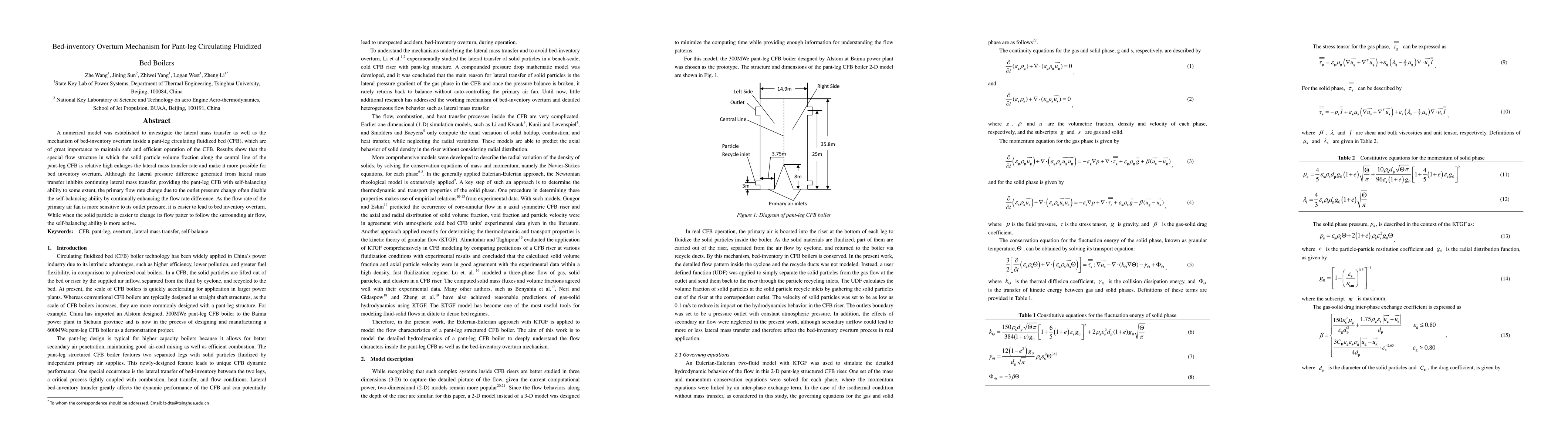 Researchers investigated the mechanism of bed-inventory overturn in pant-leg circulating fluidized beds and found that a special flow structure can enhance lateral mass transfer, but this can lead to instability if not managed. The primary air fan's outlet pressure change can exacerbate bed inventory overturn.
