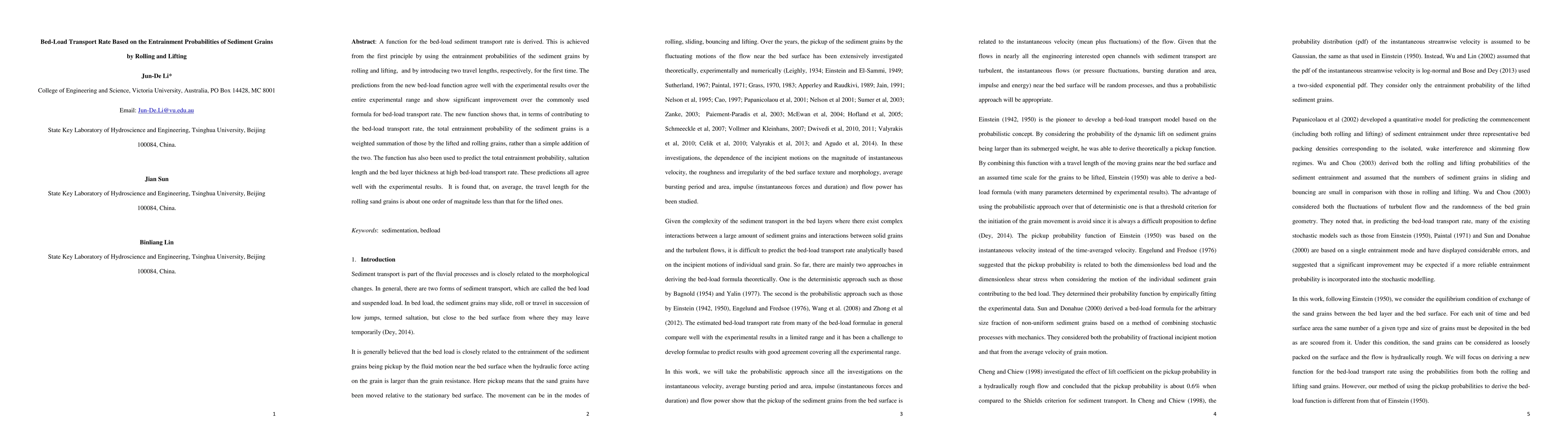 This paper derives a new function for bed-load sediment transport rate based on the entrainment probabilities of sediment grains by rolling and lifting, introducing two travel lengths for the first time. The new model shows significant improvement over existing formulas and accurately predicts experimental results, revealing that the total entrainment probability is a weighted sum of lifted and rolling grains.