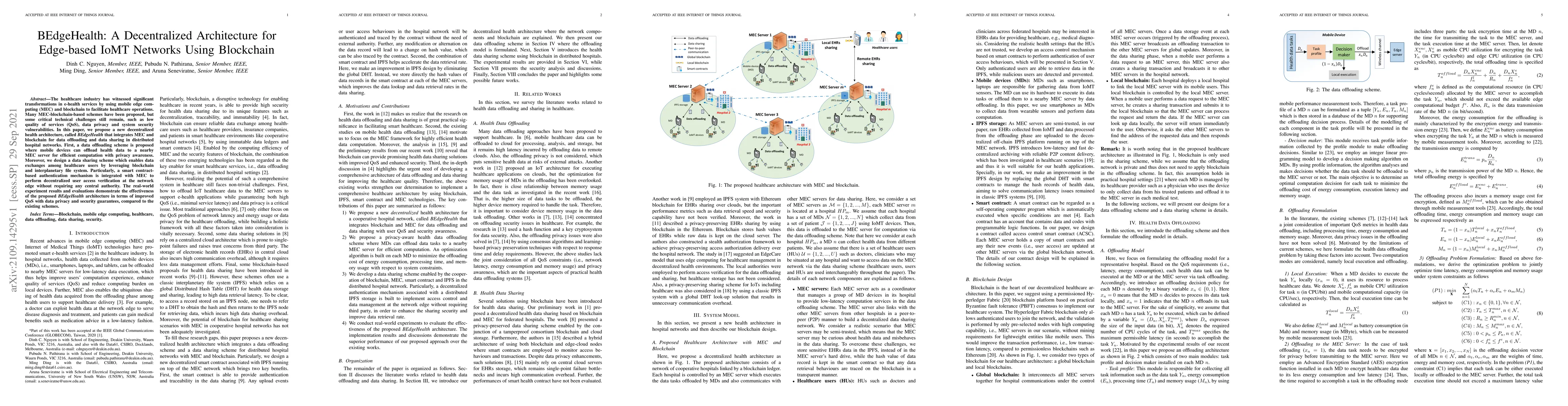 A novel decentralized architecture was proposed using MEC and blockchain for health data offloading and sharing in distributed hospital networks.
